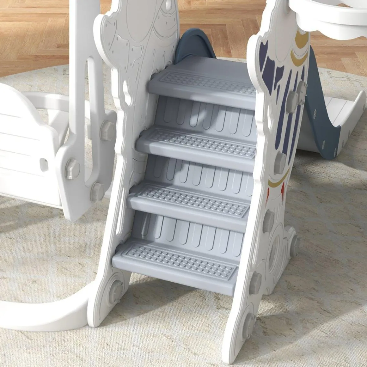 ¡Convierte tu hogar en un parque de aventuras intergaláctico con este conjunto de columpio, canasta de baloncesto y tobogán infantil con temática espacial de Aiyaplay! Este asombroso juguete 3 en 1 es ideal para fomentar la creatividad y la imaginación de los niños, al mismo tiempo que desarrollan habilidades como la coordinación mano-ojo y el equilibrio.