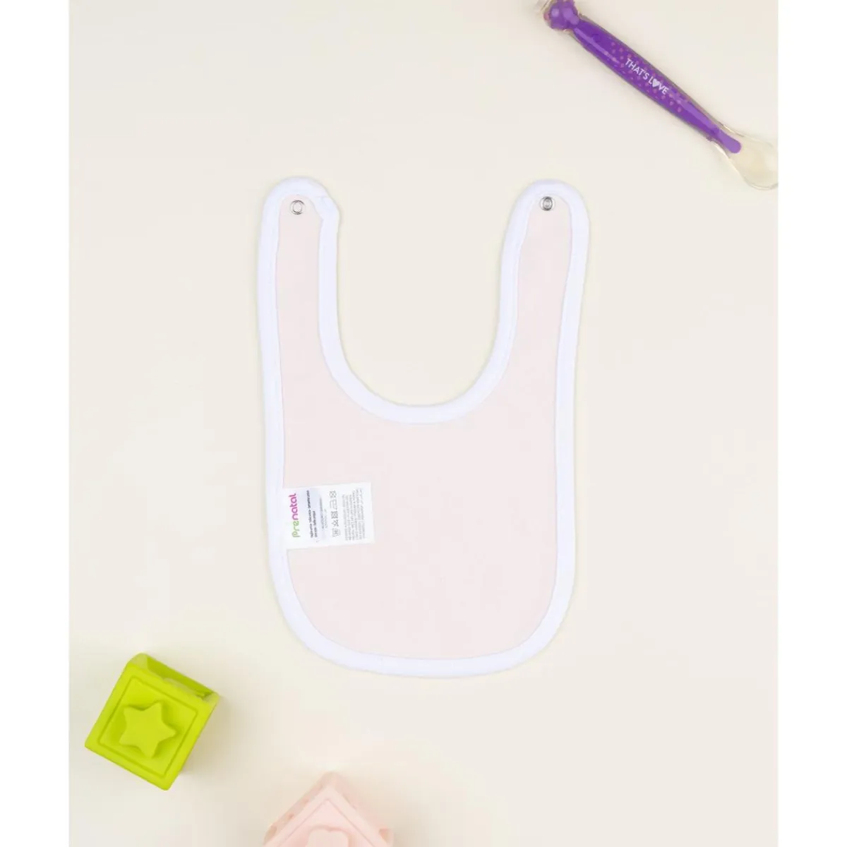 Babero rosa claro para bebé con estampado blanco