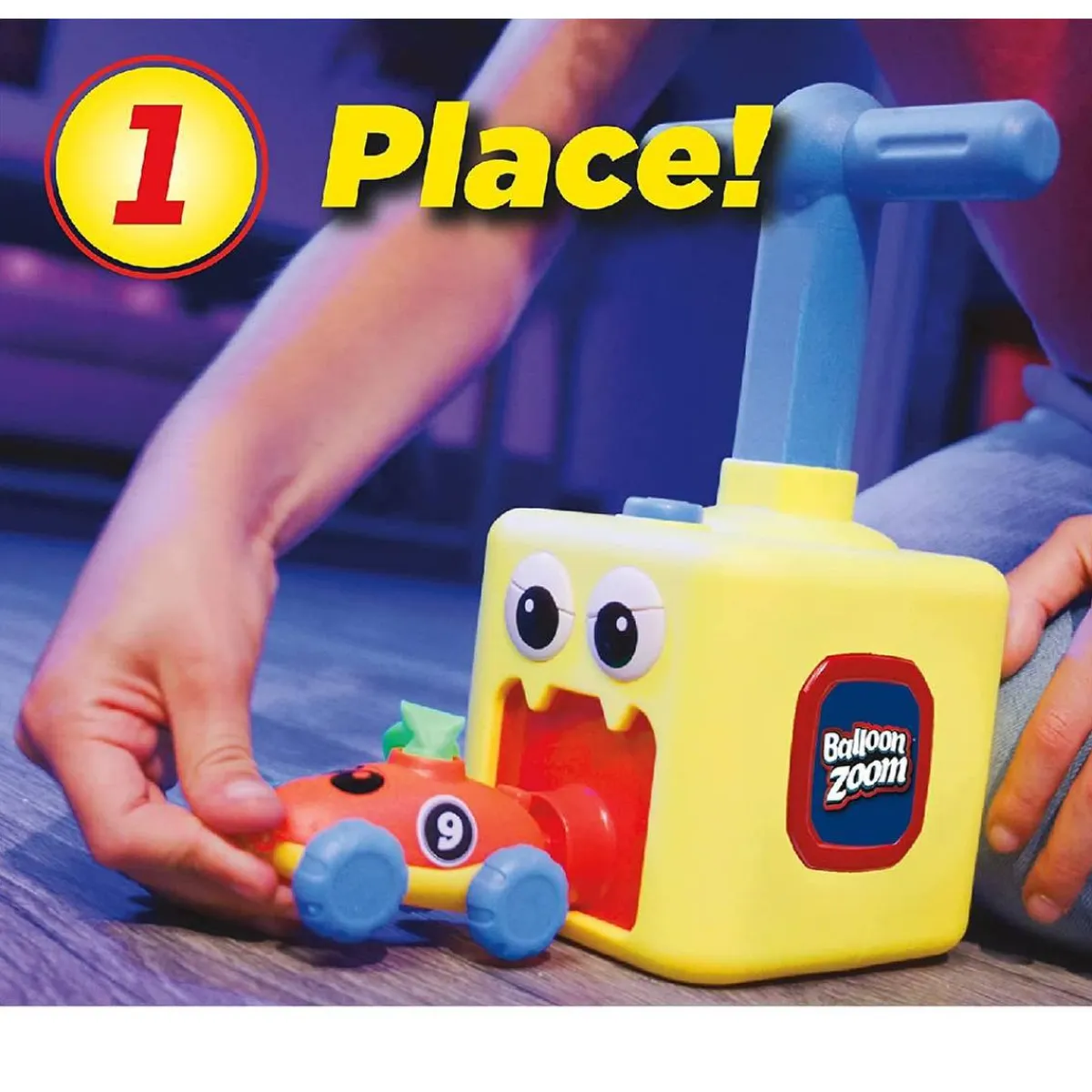 Increíble juego de carreras, solo tienes que inflar el globo y lanzar el coche, no necesita pilas ni cargadores. Con el sistema Easy Connect tendrás un máximo impulso gracias al sellado hermético.