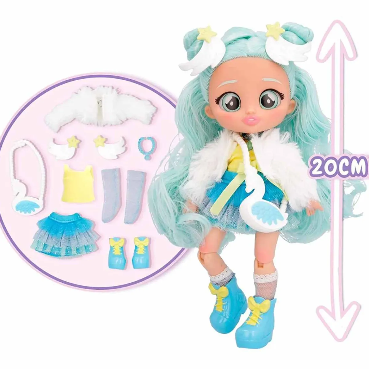 Coney y a Sydney miden 20 cm aproximadamente, tienen el pelo largo y suave, muy fácil de peinar, tienen ojos de cristal y el cuerpo articulado.
