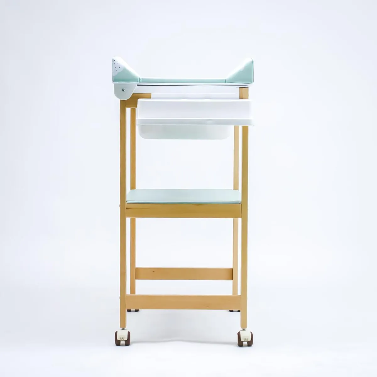 Bañera de Madera Natural Sobrebidé Safari Mint. Bañera de Madera Sobrebidé con cambiador, muy funcional y práctica, con estructura de madera de haya natural lacada. Dispone de ruedas (con banda de goma) que facilitarán el traslado al lugar que prefieras para el baño del bebé.