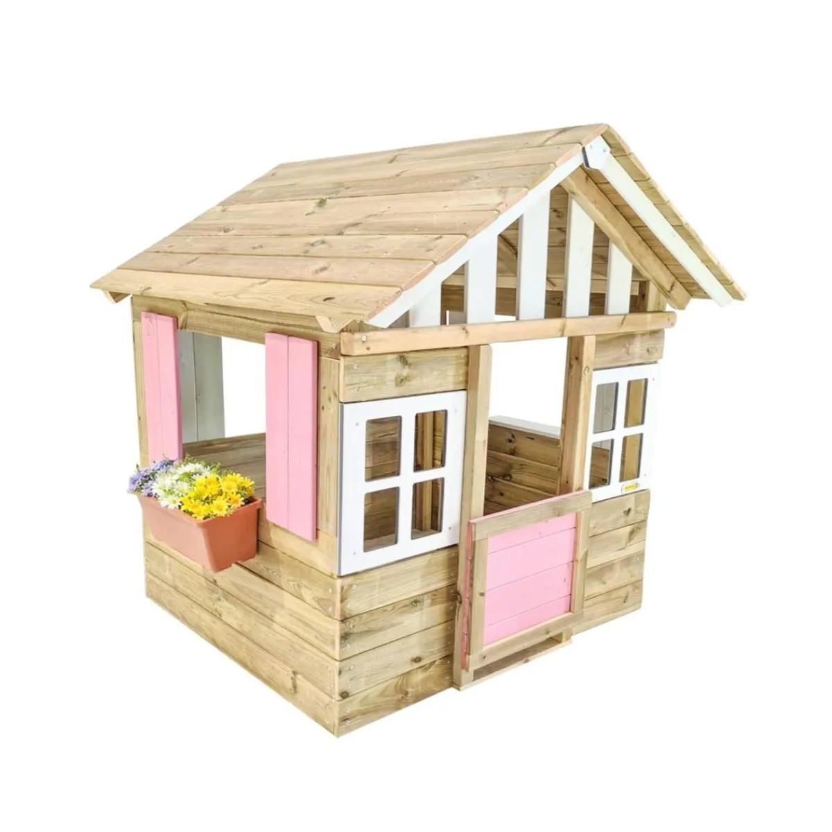 Casita madera Lollipop Rosa. La Casita Lollipop está fabricada en madera de pino de gran calidad. La madera utilizada para su fabricación son de bosques Europeos renovables, por lo que respetan el medioambiente y es una madera muy duradera, con un tratamiento contra las plagas de insectos y para que sea resistente en el exterior. Este tratamiento está libre de arsénico.