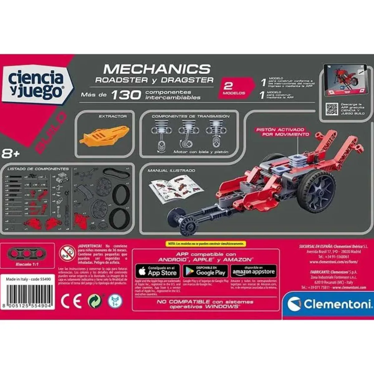 ¡Prepárate para divertirte y aprender al mismo tiempo con el juego educativo de ciencia y construcciones Clementoni Mechanics Roadster And Dragster! Con más de 90 piezas, podrás armar y desarmar dos modelos diferentes de vehículos: un elegante Roadster y un poderoso Dragster. Este juego te permitirá explorar distintos conceptos de ingeniería y mecánica básica mientras disfrutas montando tus propios coches.