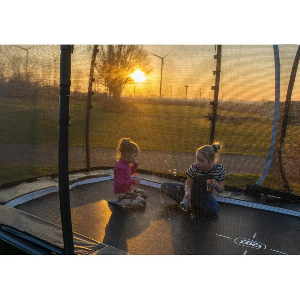 Gracias al sistema de protección para los pies (FPS) de Exit que interpone una red de protección entre la lona de salto y el acolchado del trampolín, los pies de la persona que está saltando nunca quedarán atrapados entre los muelles.