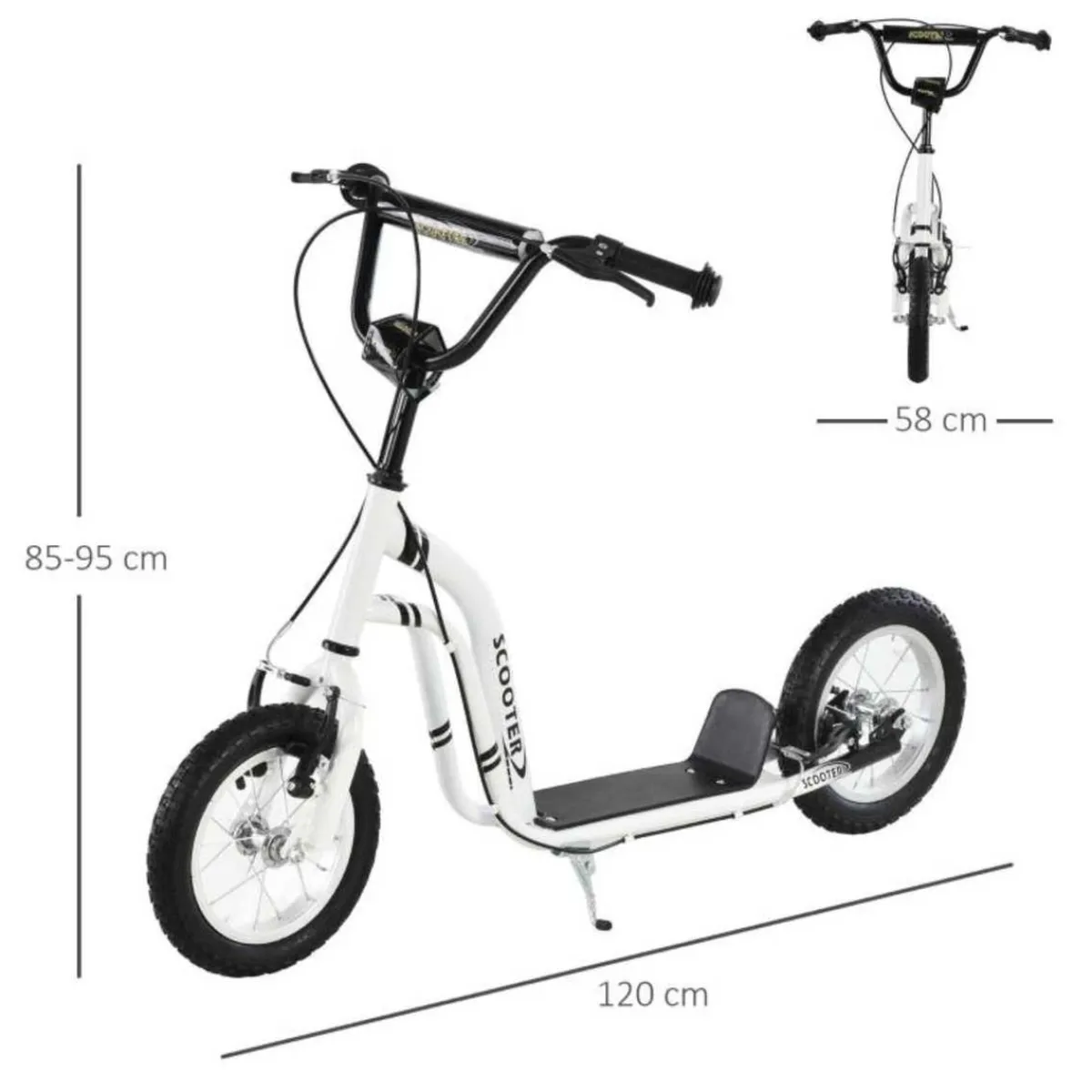 Homcom – Patinete Ajustable Para Niños Blanco/Negro HomCom. Este patinete de ruedas grandes de Homcom es ideal para que lo utilicen tus hijos mayores de 5 años.