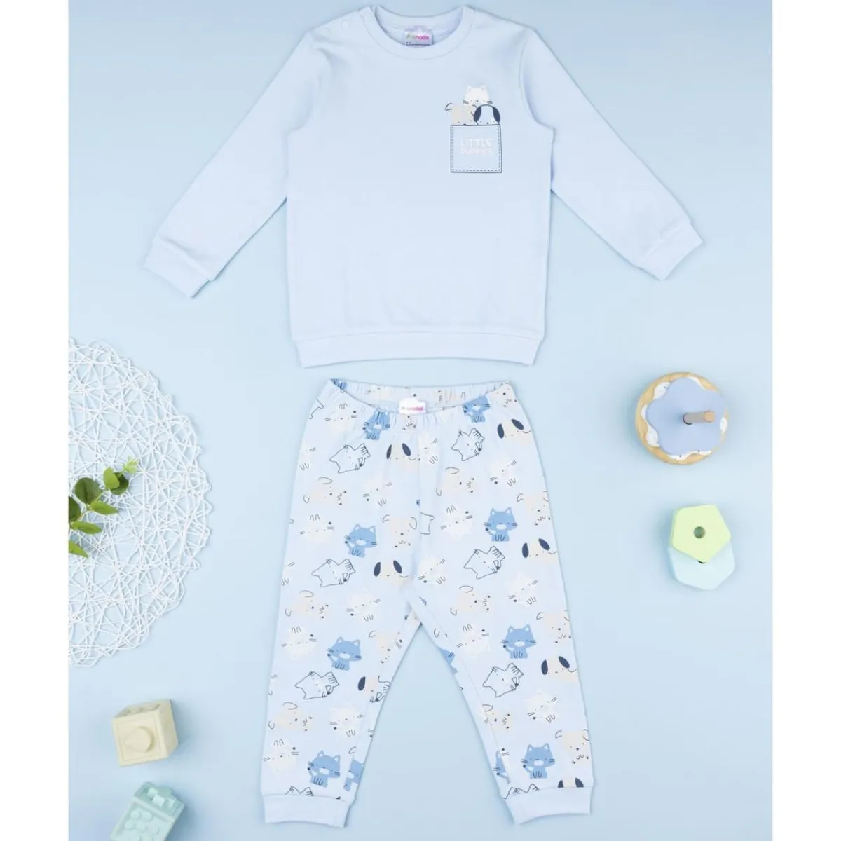 Este pijama de dos piezas para niño combina comodidad y diversión con estampados coordinados de animalitos sobre fondo azul claro. La camiseta de manga larga y los pantalones a juego presentan un corte cómodo y ajustable gracias al elástico en la cintura, facilitando la movilidad y el descanso nocturno. Fabricado en algodón 100%, garantiza suavidad y transpirabilidad, cuidando la piel delicada del niño. Perfecto para dormir o momentos de relax en casa, este pijama es resistente, práctico y fácil de combinar, convirtiéndose en una prenda esencial para noches llenas de comodidad y estilo infantil.