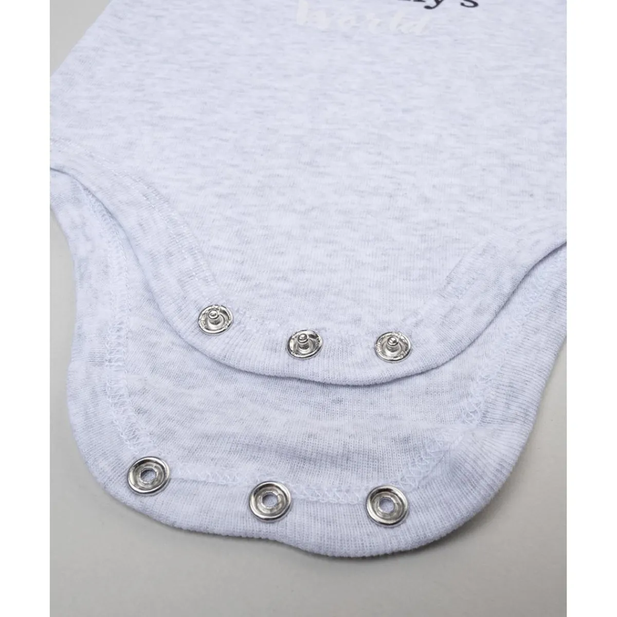 Body básico unisex de manga corta. La prenda se presenta en total gris claro con estampado “daddy Mommy” negro y rojo. El ajuste es holgado y práctico gracias a botones automáticos en la parte posterior y en la entrepierna. Accesorios no a la venta. El paquete contiene solo la prenda de vestir