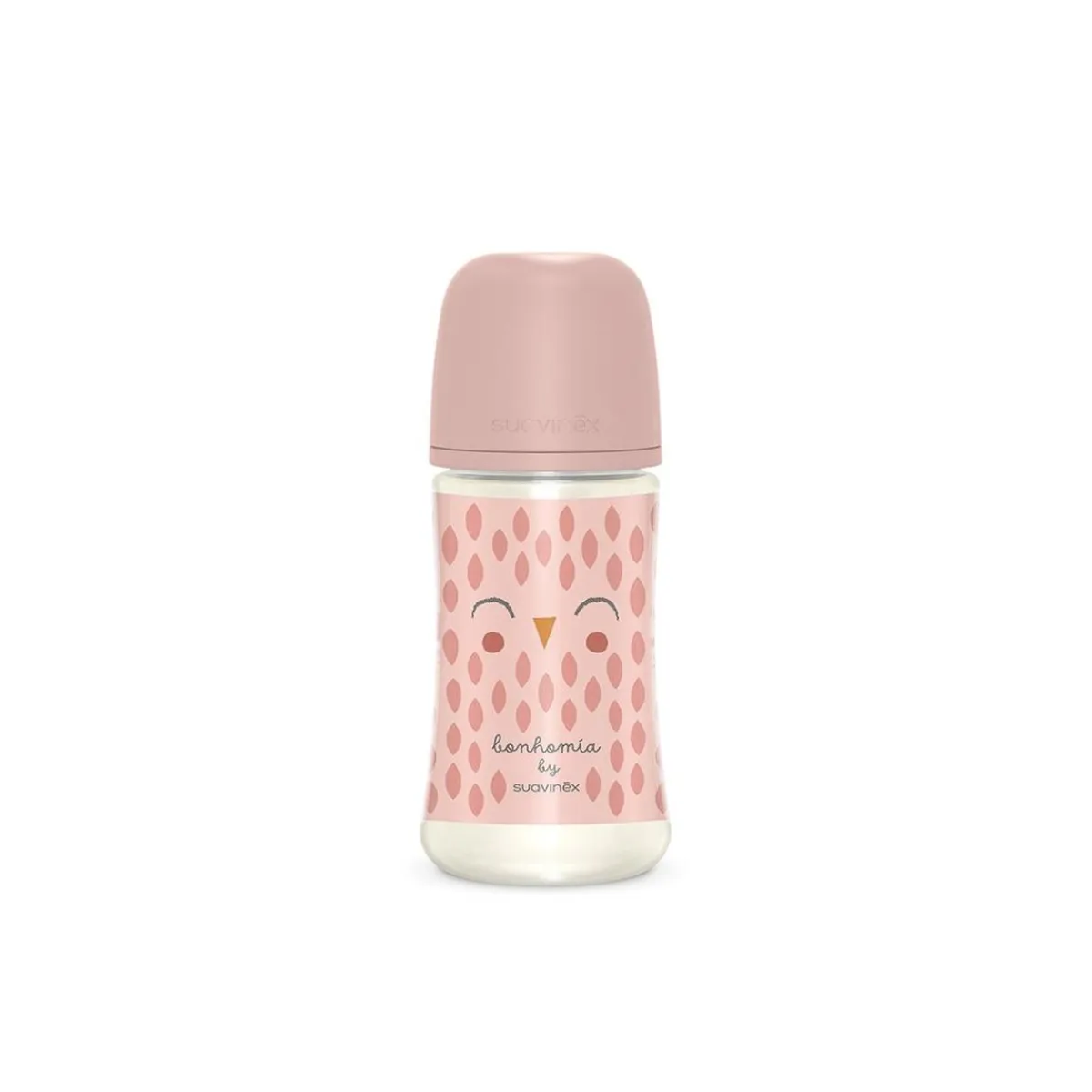 Suavinex – Bonhomia biberón con tetina sx pro +3 meses 270ml búho rosa