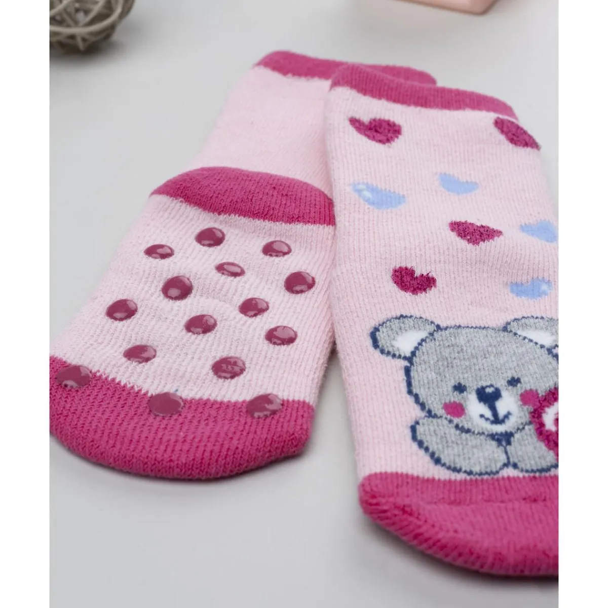 Calcetines antideslizantes de niña rosa con ositos