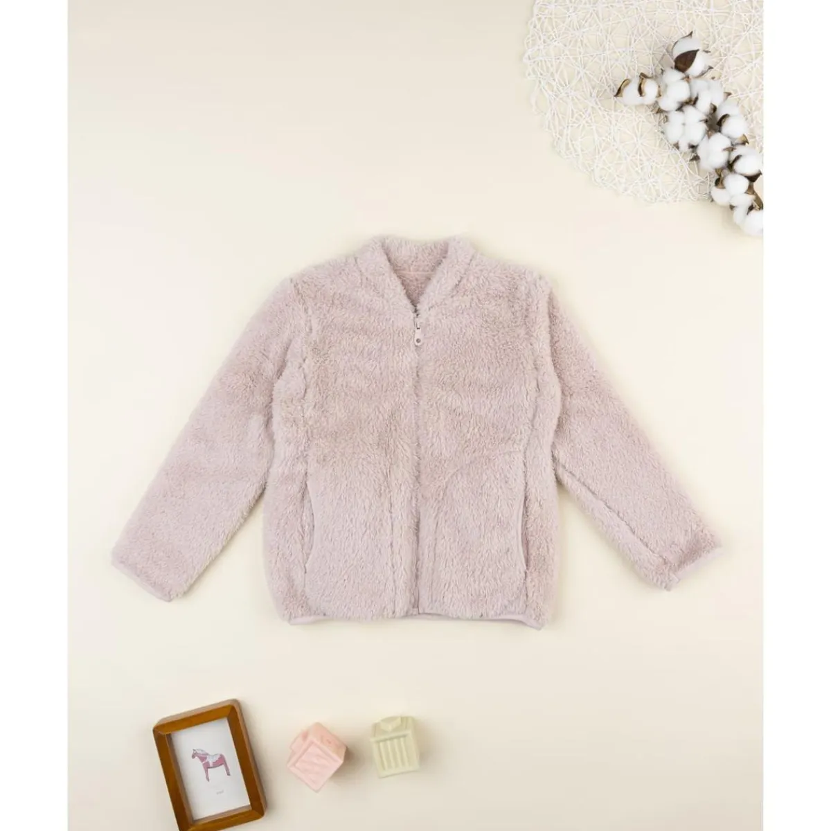 Perfecto para las tardes frías o después del baño, este cárdigan aporta calidez y confort con un diseño dulce. Su textura mullida y resistente lo convierte en un básico acogedor para niñas.