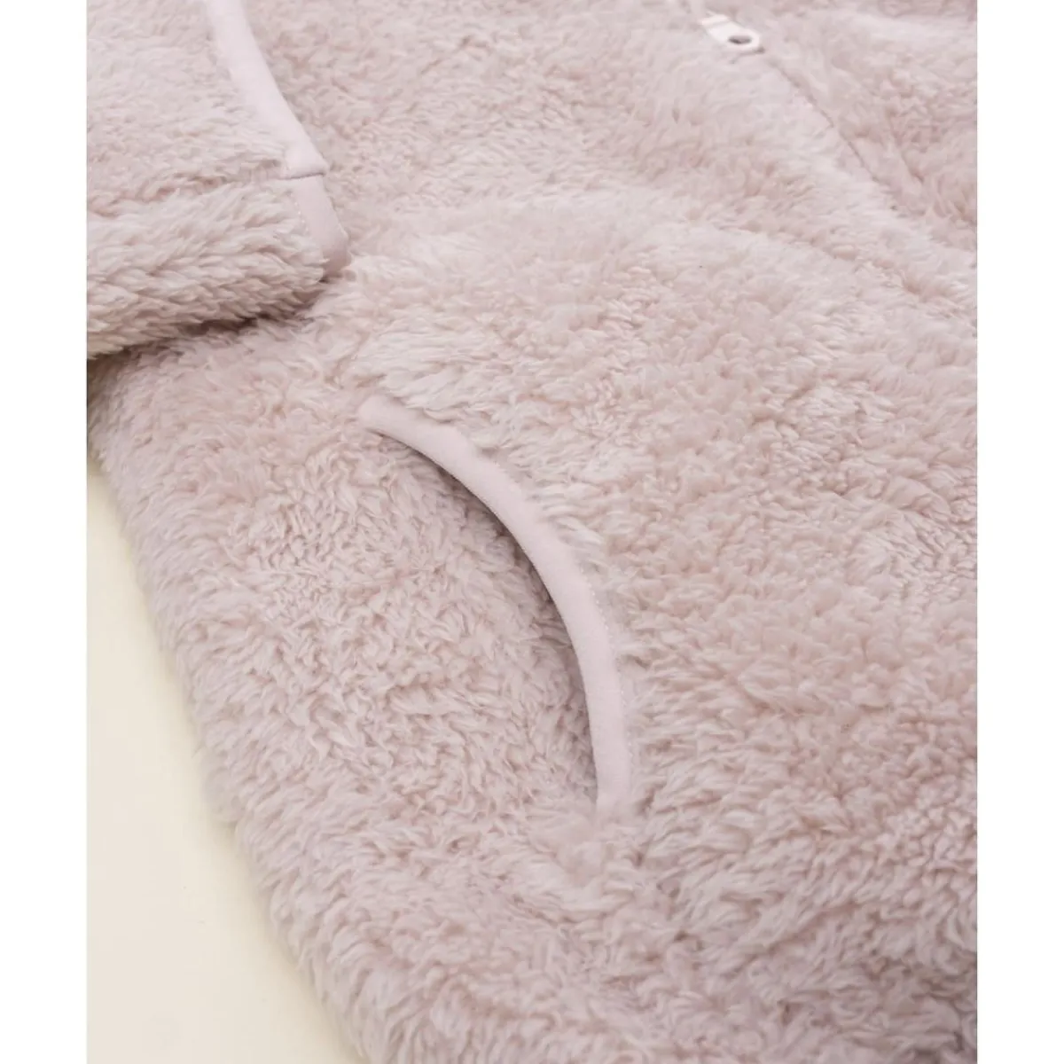 El cárdigan bata rosa es una prenda cálida y amorosa que combina el confort de una chaqueta con la suavidad de una bata. Realizado en tejido tipo “fake fur” de tacto aterciopelado, cuenta con bolsillos laterales y cierre de cremallera frontal. Su corte holgado facilita el movimiento y ofrece un abrigo ligero ideal para el hogar.
