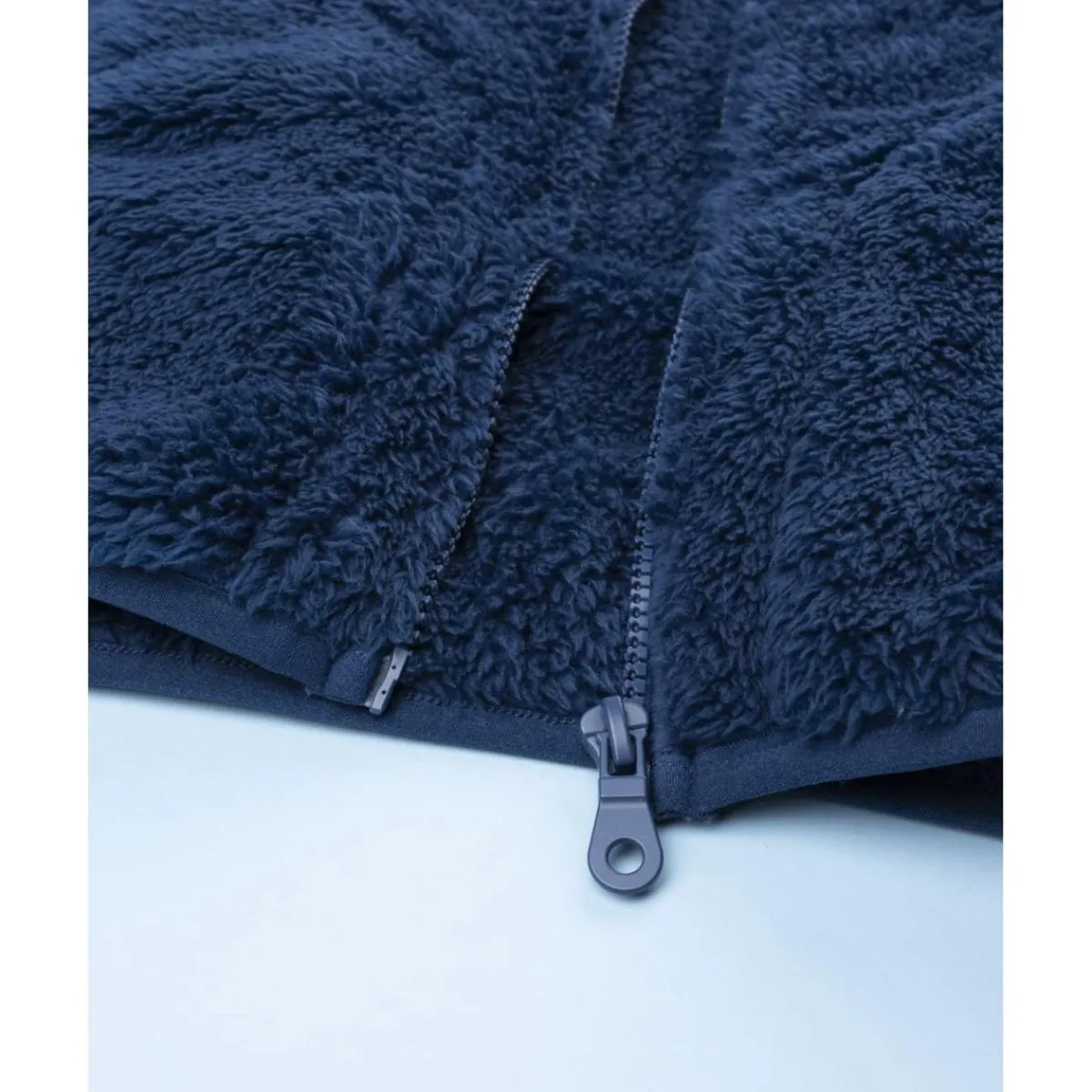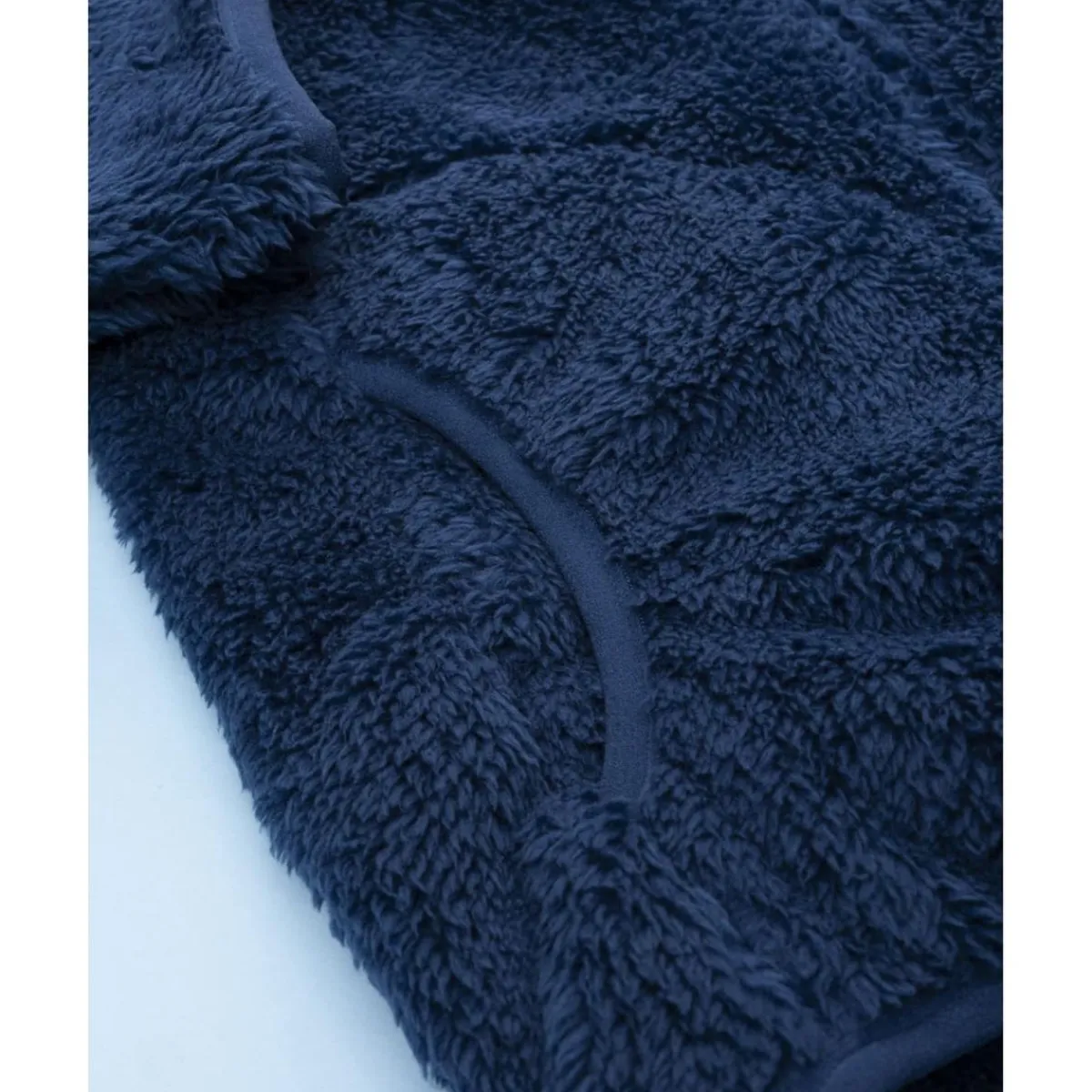 Este cardigan vestidor azul unisex combina comodidad y suavidad en un diseño acogedor de pelo sintético. Presenta un tono azul noche con bolsillos laterales y cierre frontal con cremallera para un uso práctico. Ideal para abrigar a los más pequeños en casa o durante sus momentos de relax.