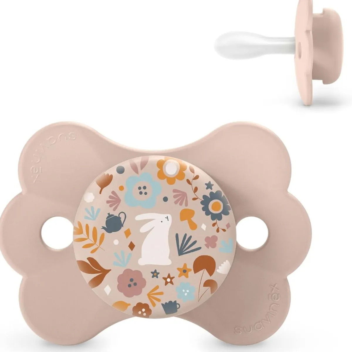 Fabricado en silicona fina y ultra-suave con acabado arenado, el chupete ofrece una calidez y flexibilidad excepcionales, adaptándose perfectamente a la cavidad bucal. La tetina Suavinex SX Pro cuenta con el respaldo de la Sociedad Española de Odontopediatría (SEOP).