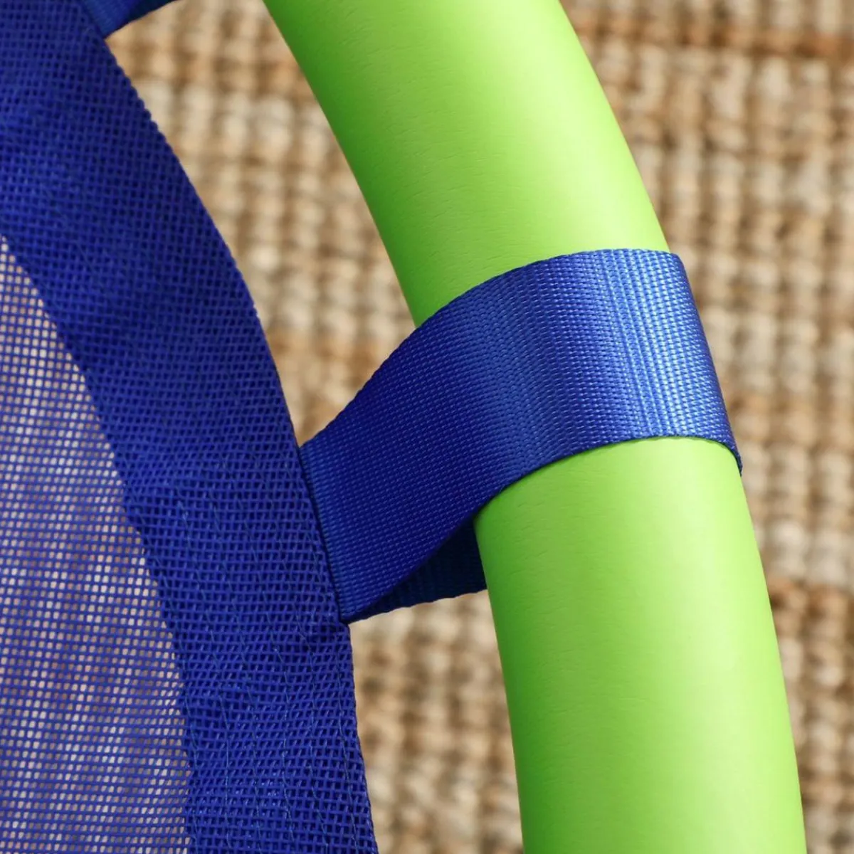 - Se puede colgar de un soporte de columpio existente o de dos cuerdas en un árbol.