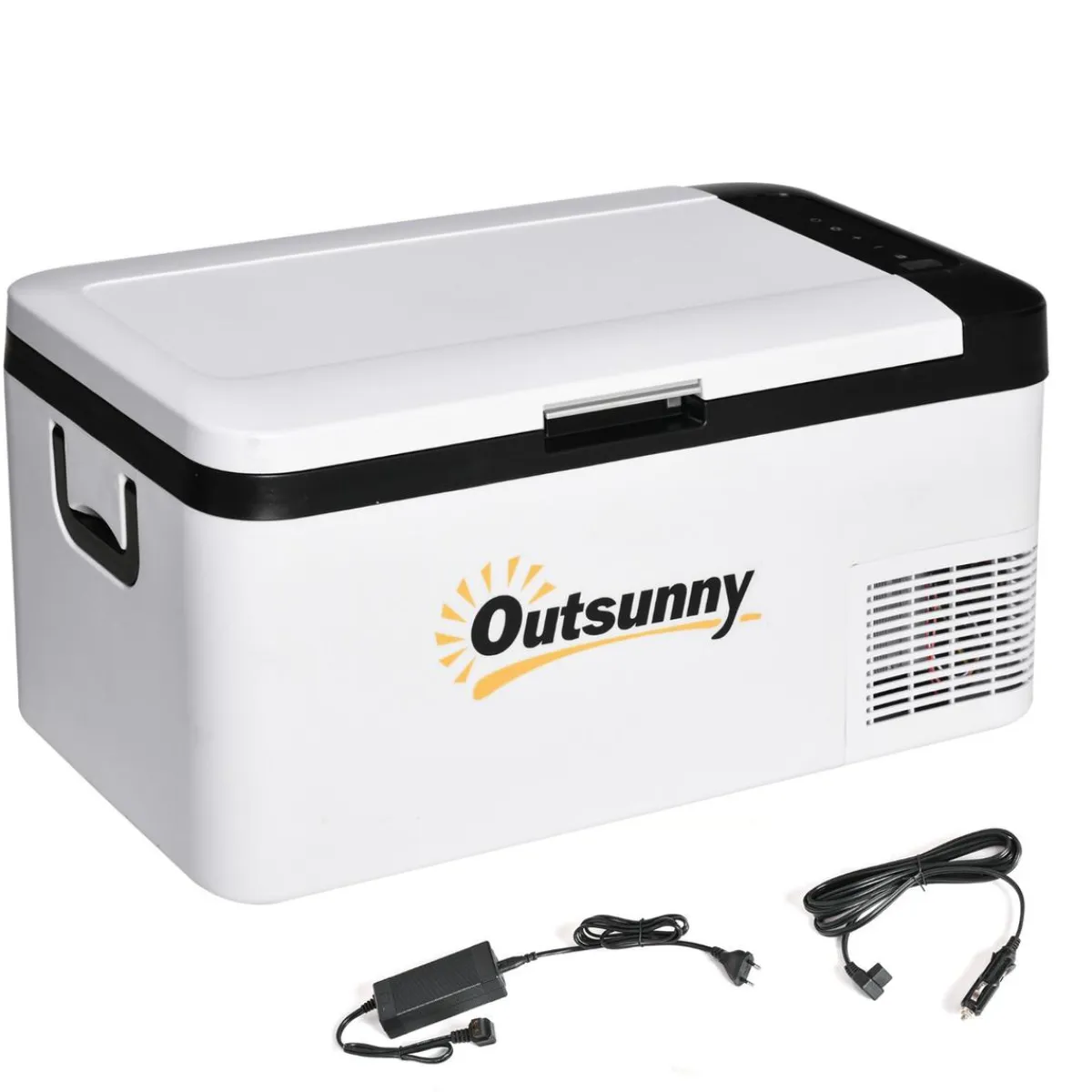 Outsunny – Nevera congelador portatil 18L Blanco, al poder ajustar su temperatura mínima a -20°C, el compartimento grande de este aparato puede utilizarse tanto como frigorífico o como congelador portátil. El compartimento pequeño solo permite refrigerar.