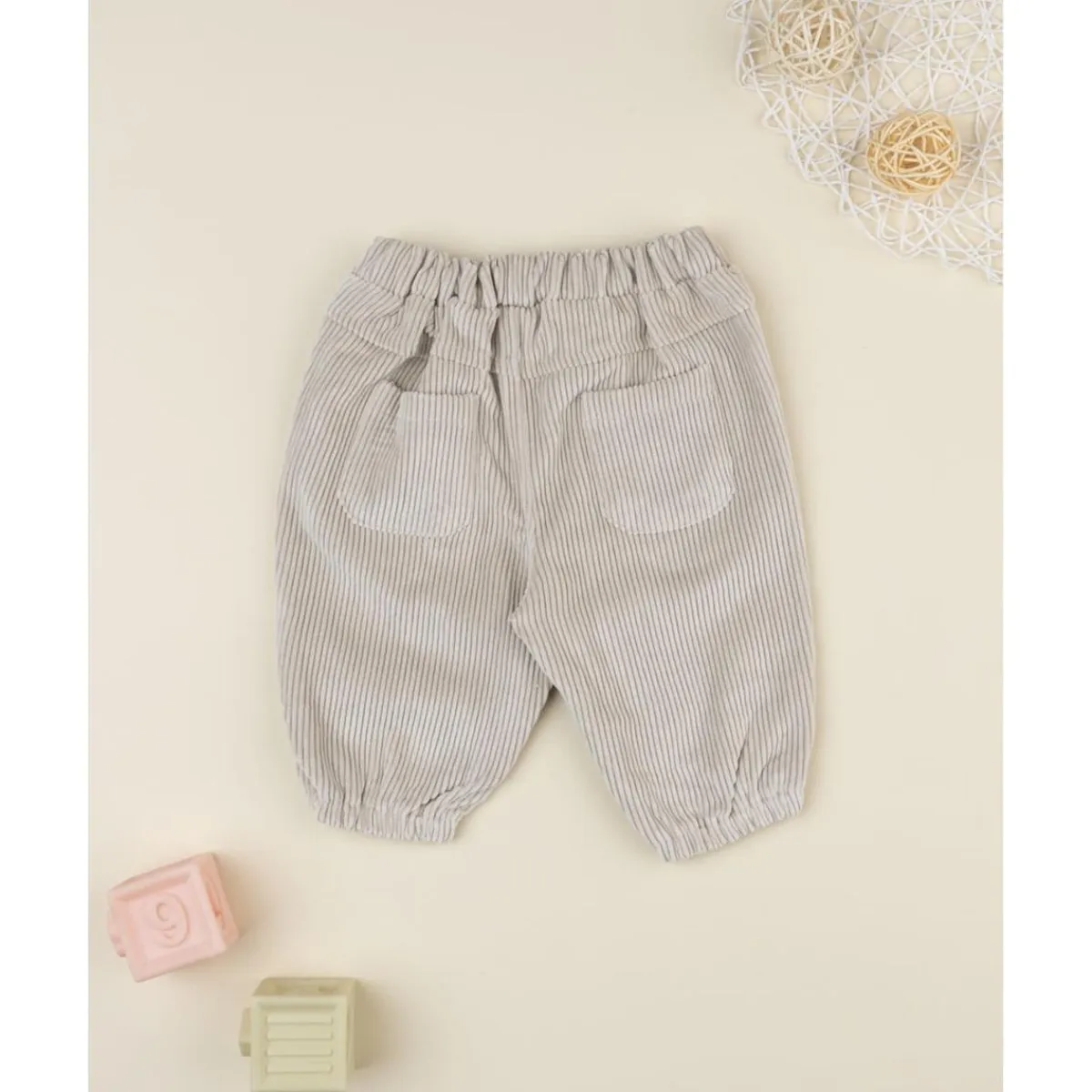 Estos pantalones de canalé para niña, en beige claro, combinan comodidad y estilo casual. Incluyen doble bolsillo y delicados bordados florales en azul en los laterales. La cintura es ajustable con elástico para adaptarse al crecimiento y los bajos con goma ayudan a mantener la silueta en su sitio durante el juego y el día a día.