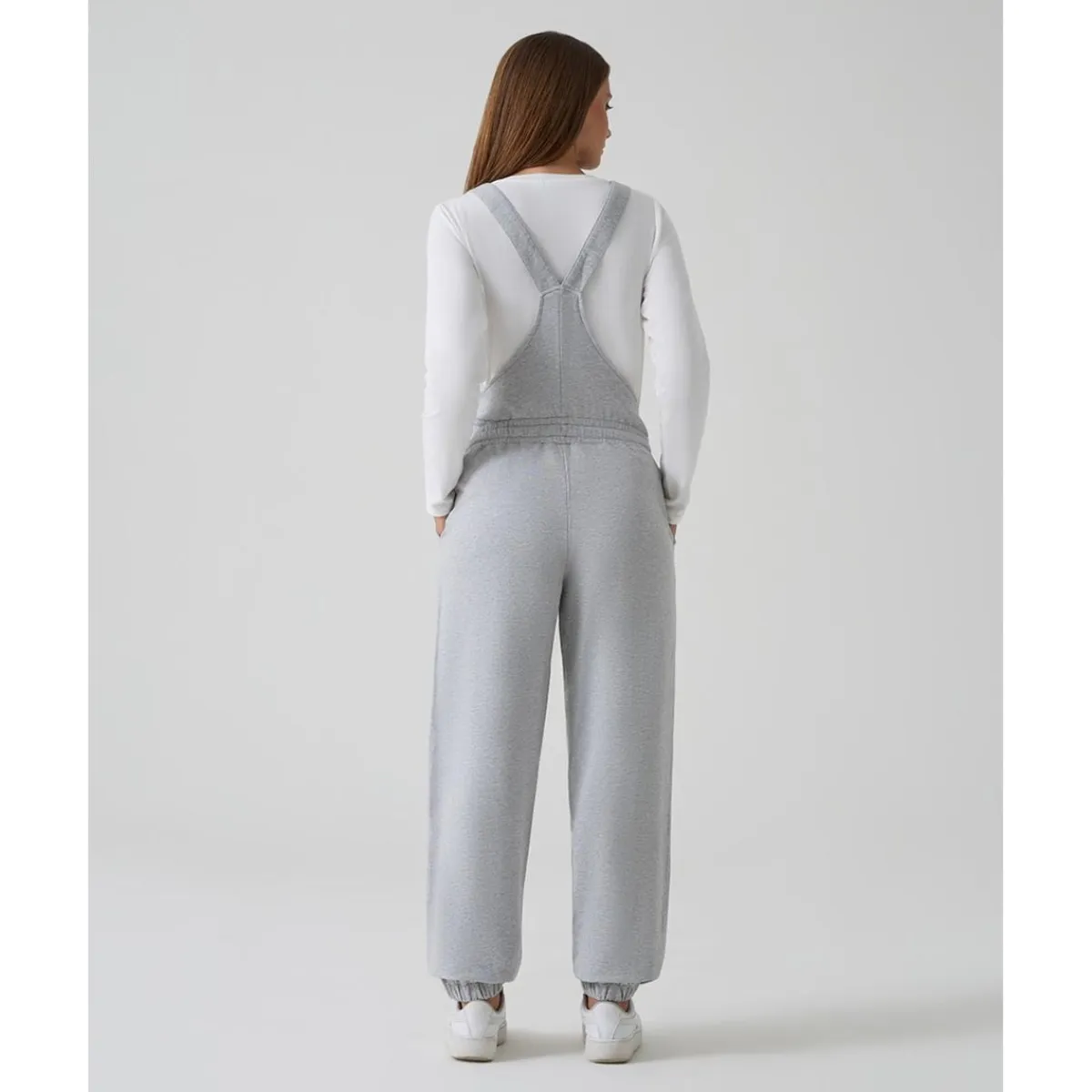 Estos petos premamá en felpa gris han sido diseñados para acompañarte durante el embarazo y después del parto. Las tiras regulables y la cintura con cordón ajustable permiten adaptar la prenda al crecimiento natural de la barriga, ofreciendo siempre comodidad y libertad de movimiento. Gracias a su corte funcional, también resulta práctica para la etapa de lactancia, facilitando un acceso discreto y sencillo.