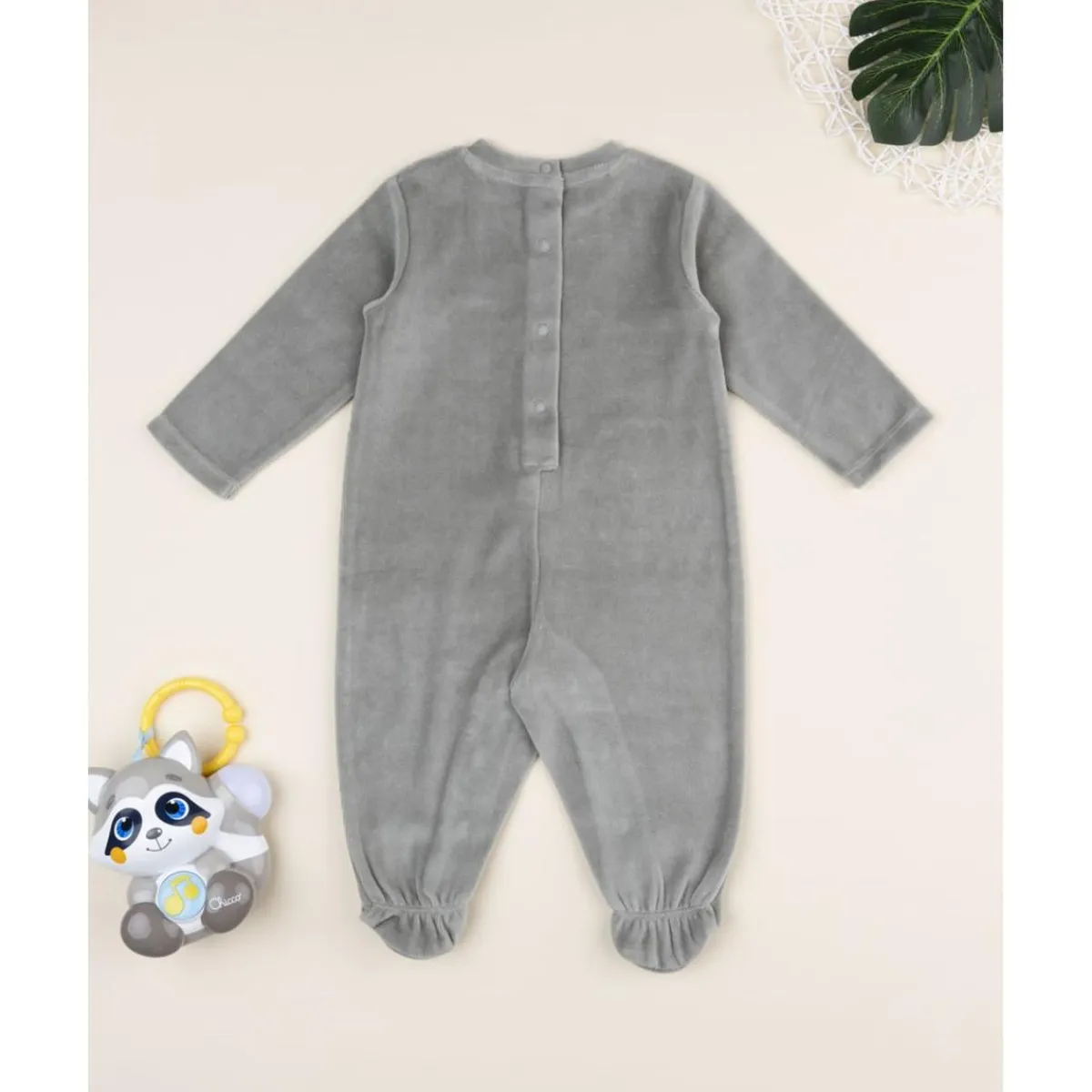 Este pijama entero de terciopelo verde con pies y estampado de leoncitos está pensado para ofrecer abrigo y comodidad continuos. Los automáticos en espalda y entrepierna permiten cambios rápidos sin enfriar al bebé.