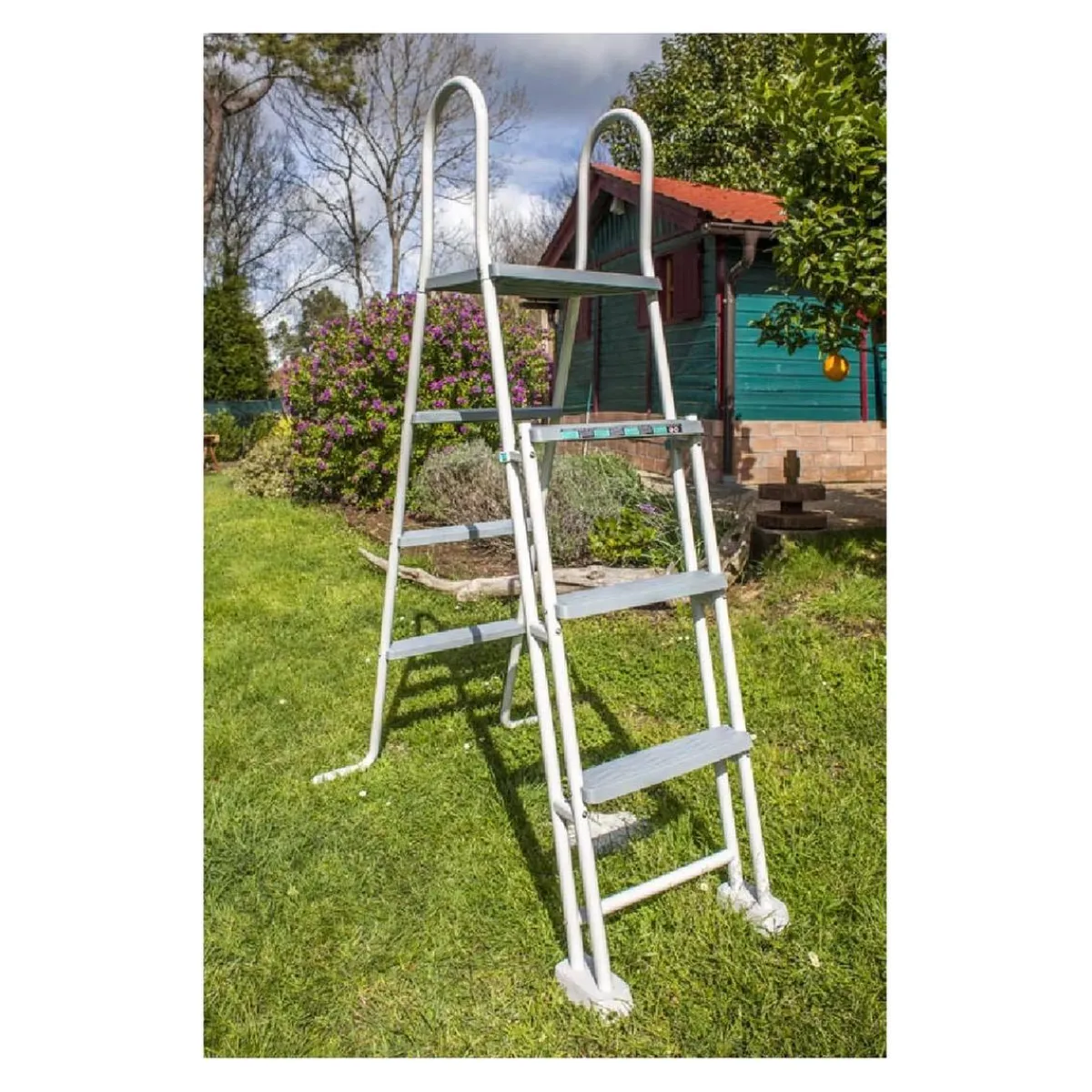 - Escalera de seguridad de 2×3 peldaños con plataforma superior.