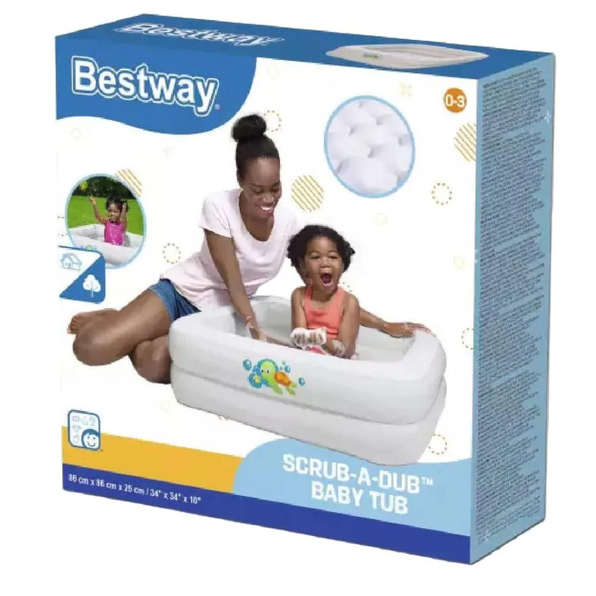 El Scrub-A-Dub también está diseñado para encajar fácilmente en la mayoría de las cabinas de ducha estándar. Gracias al suelo hinchable, la bañera ofrece a tu pequeño un confort óptimo con garantía de bienestar.
