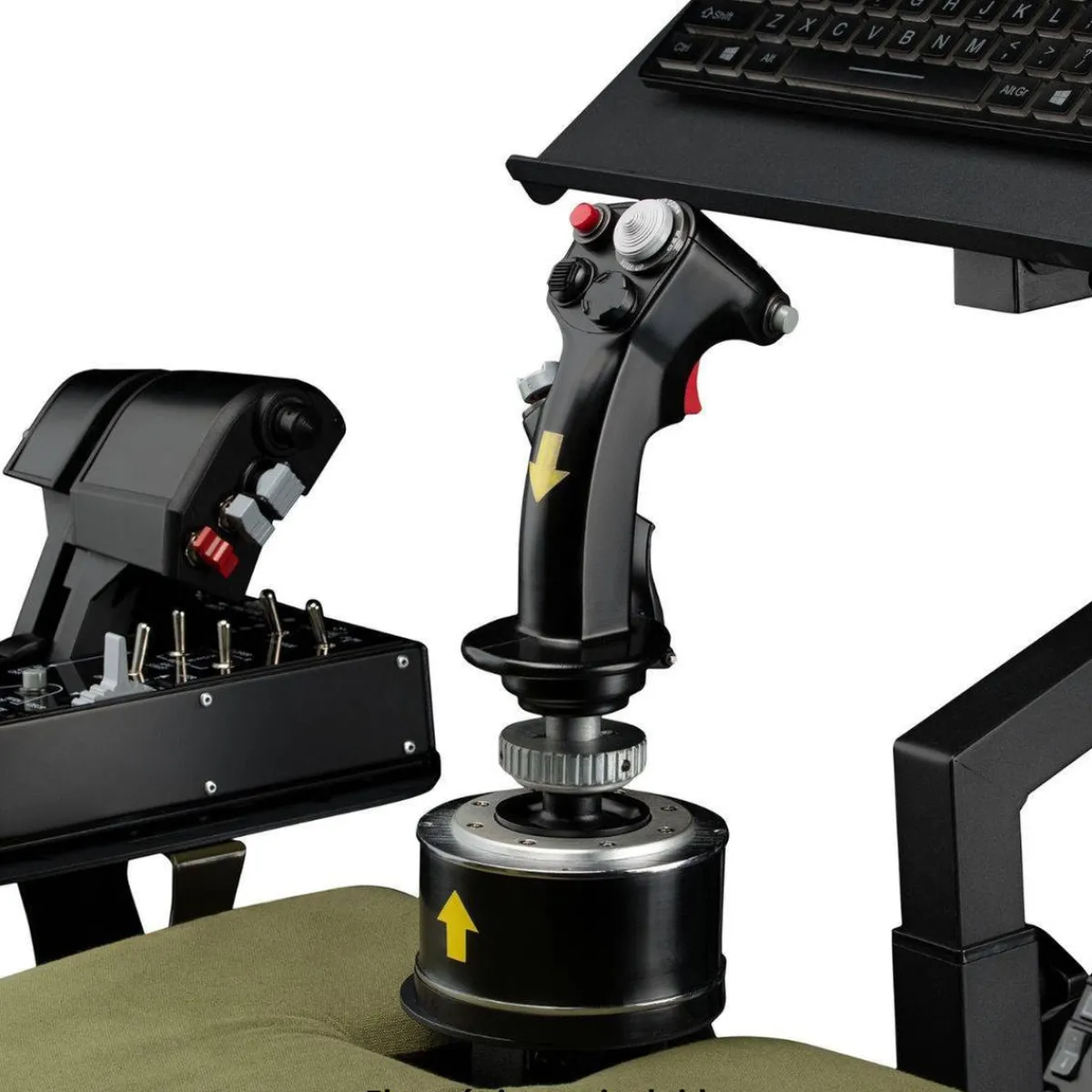Esta cabina es compatible con una amplia gama de dispositivos electrónicos tales como yugos, joysticks y aceleradores de las principales marcas manteniéndose fiel a la cabina militar, el joystick se puede acoplar directamente entre las piernas del usuario para una auténtica experiencia de combate. Con un ecosistema de accesorios de vuelo creciente por parte de Next Level Racing, la comunidad de pilotos puede esperar un resultado adaptado a la simulación de vuelo. El simulador de vuelo Boeing Militar está específicamente diseñado para tener el Thrustmaster TCA Yoke Pack Boeing Edition directamente montado en la cabina, con una verdadera posición periférica, para la experiencia de simulación de vuelo más realista.