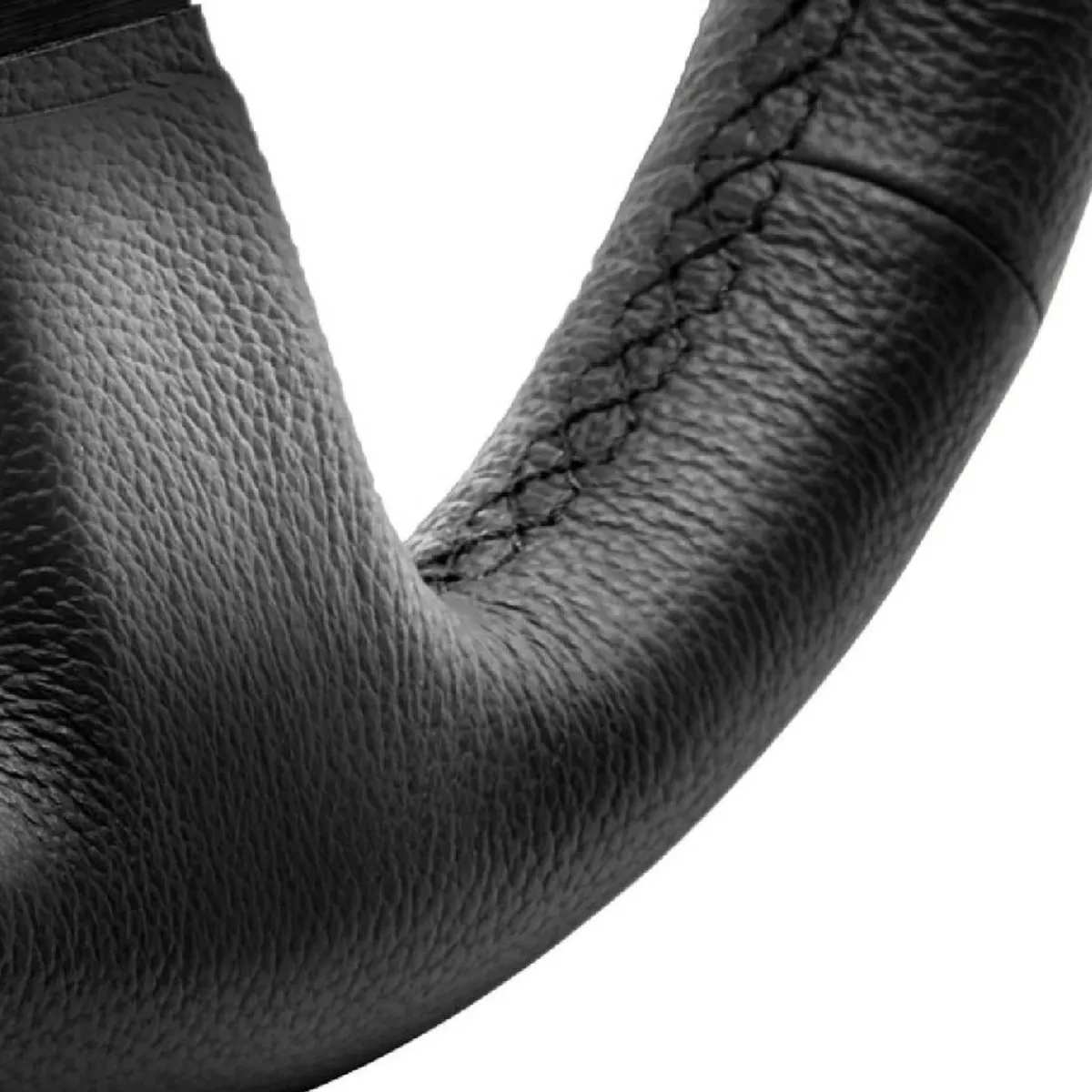 - Realista, piel genuina cosida a mano en toda la circunferencia del volante para conseguir una sensación auténtica.