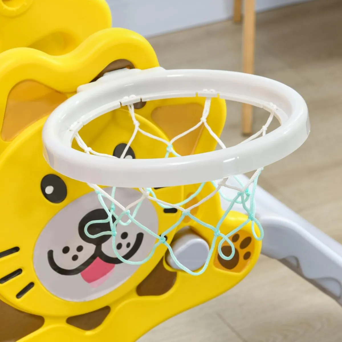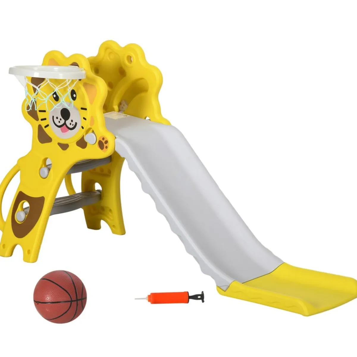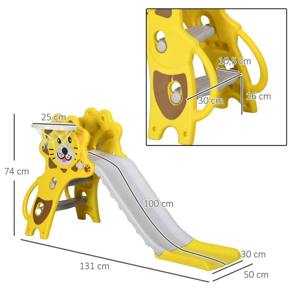 Homcom – Tobogán de interior León. Diseñado para proporcionar horas de diversión, este tobogán para niños cuenta con 2 escaleras antideslizantes para garantizar a los más pequeños un apoyo seguro y una estructura confiable. El tobogán también cuenta con una canasta de baloncesto montada lateralmente para que los niños se diviertan de varias maneras con la misma estructura. Gracias a los adorables dibujos del león, este tobogán infantil de interior añadirá un toque juguetón a los espacios de juego de los más pequeños.