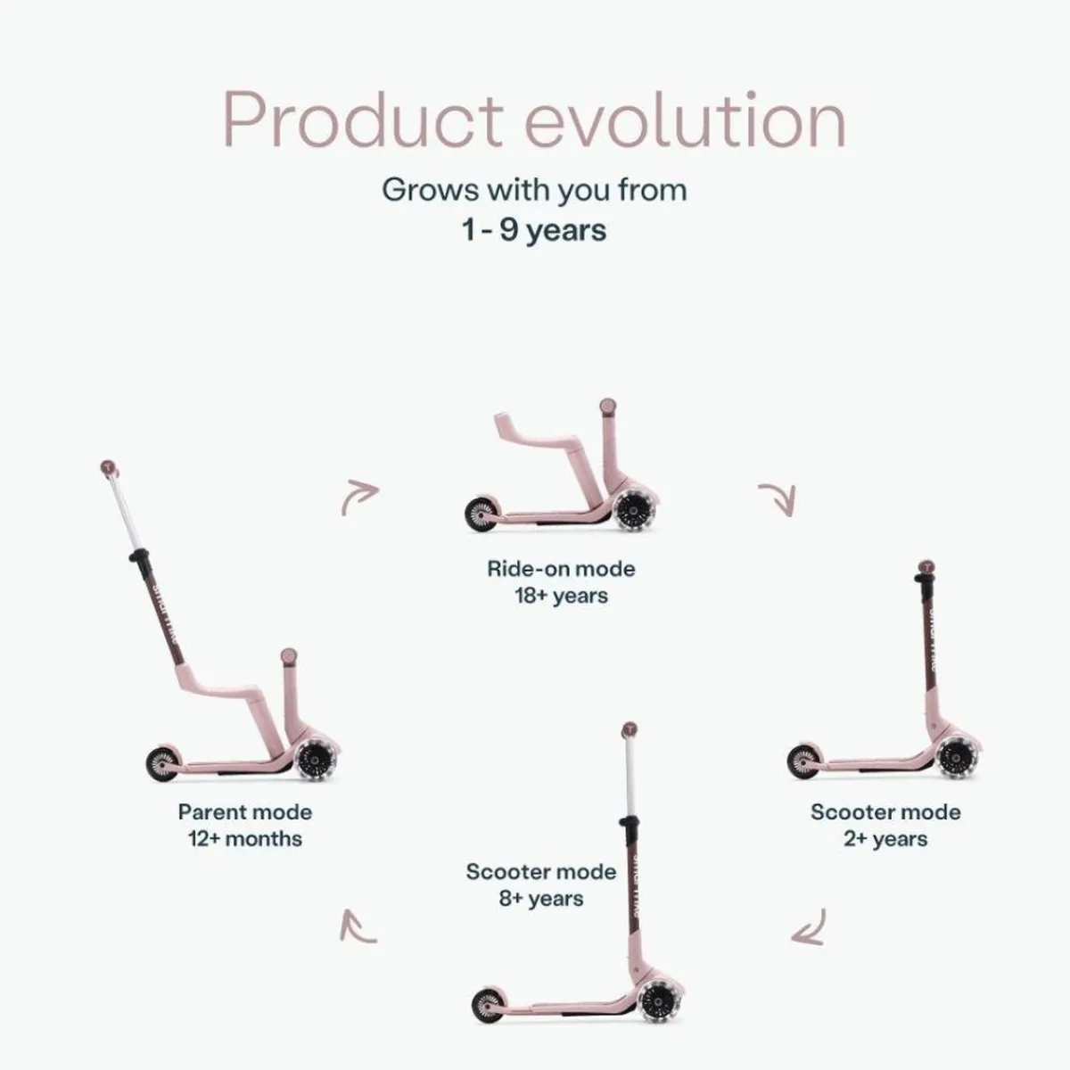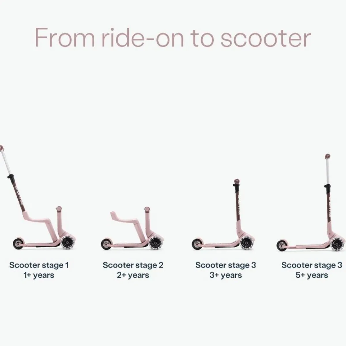 Incluye: Patinete extensible, base asiento, reposapiés, manillar alto y manillar bajo, instrucciones de montaje.