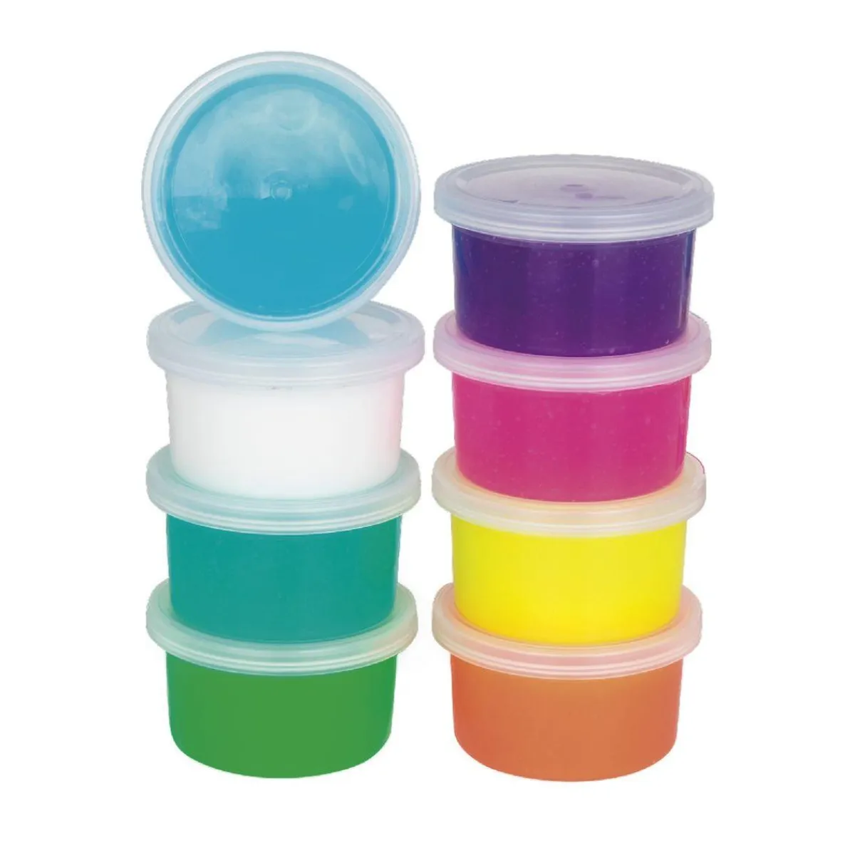 - 8 botes de Slime en colores neón alegres y brillantes,