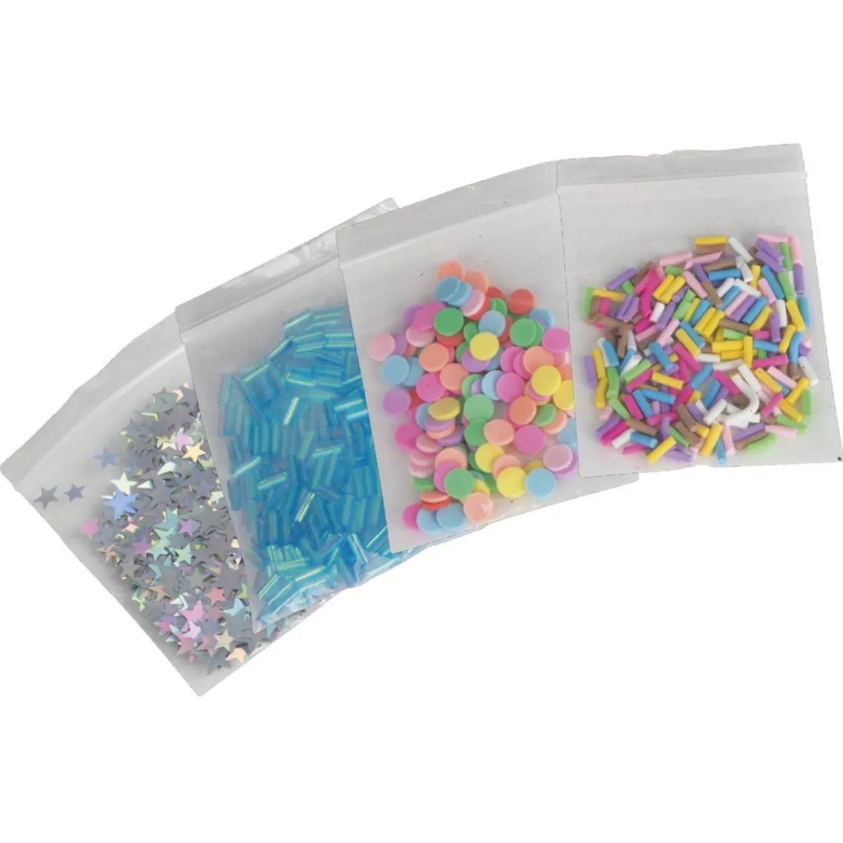 - 4 sobres de adornos brillantes y coloridos: para mezclar o simplemente añadir encima de tus mezclas.