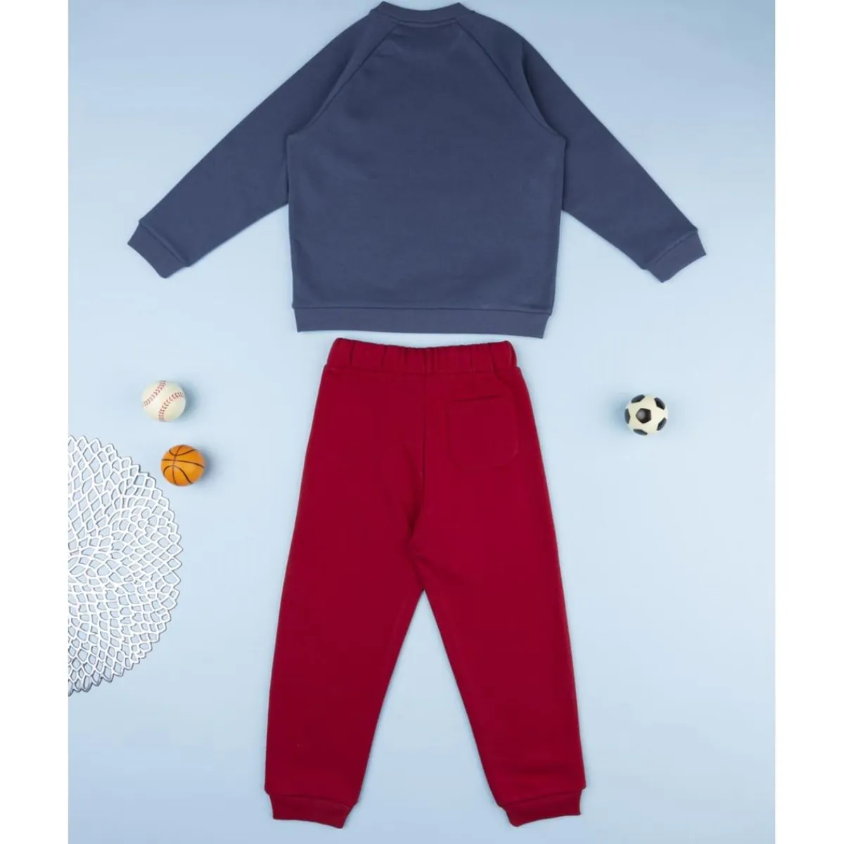 Conjunto jogging azul y burdeos para niño