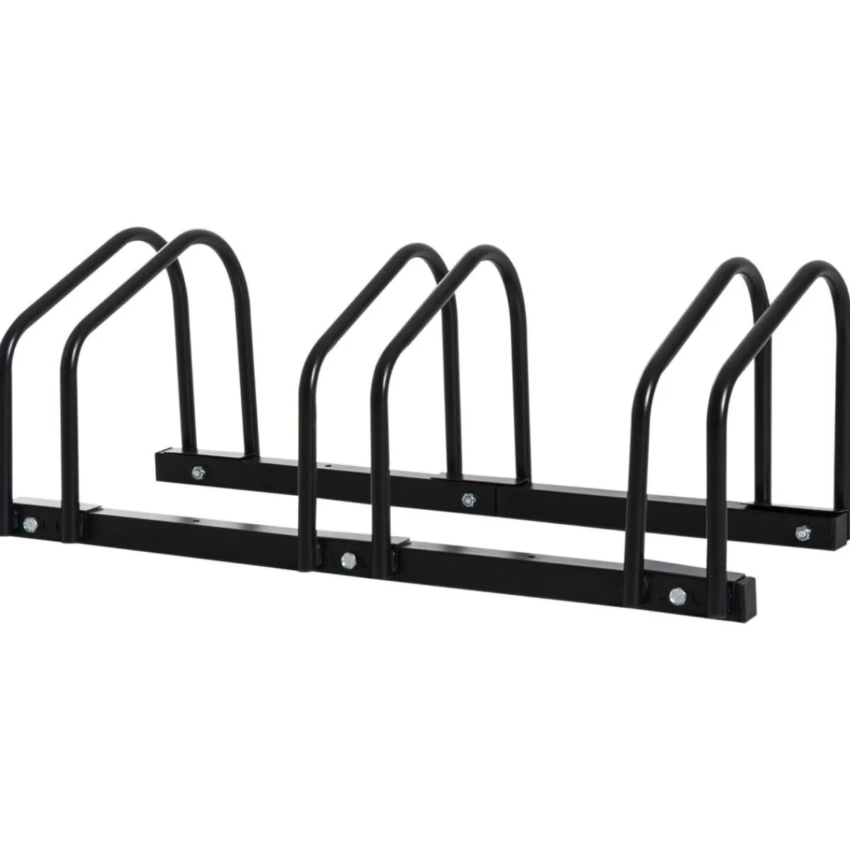 Homcom – Aparcamiento para 3 bicicletas Negro, tiene capacidad para que puedas estacionar hasta 3 bicicletas, aunque al tener una estructura desmontable podrás instalar los soportes de forma individual.