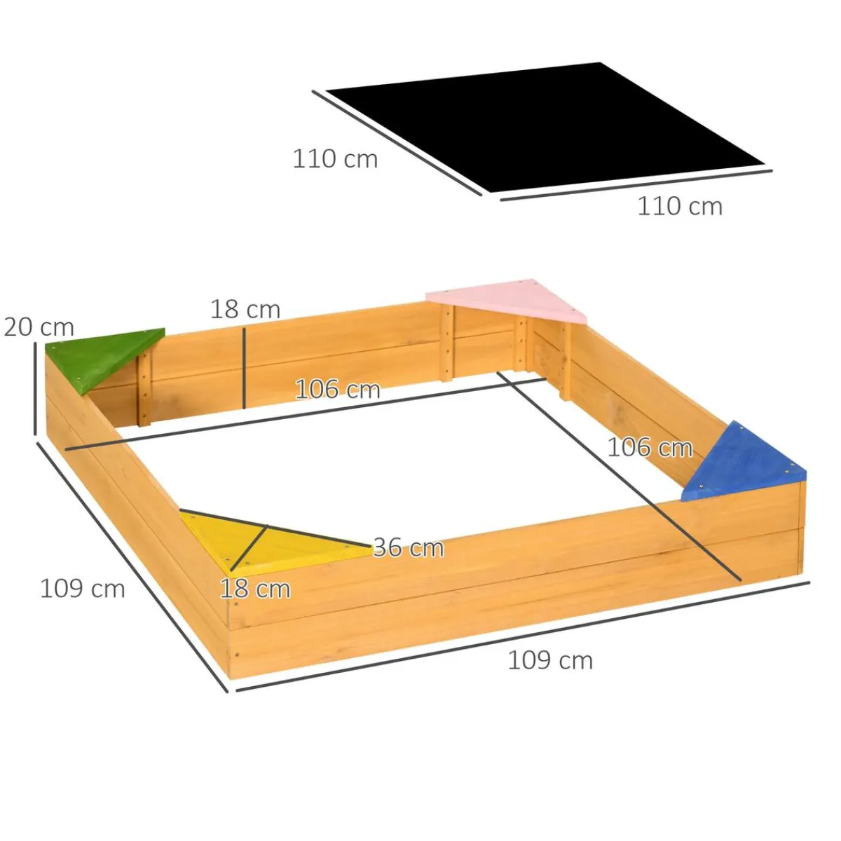 Outsunny – Arenero infantil de madera, un arenero para tener en cualquier espacio al aire libre como el jardín, patio o terraza. Ideal para mejorar la creatividad, la imaginación y la capacidad de colaboración para cavar y jugar.