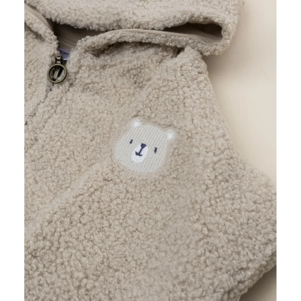 Cardigan cálido de efecto peluche para bebé, en beige liso y con capucha para abrigar cabeza y orejitas. Cierra con cremallera frontal para vestir rápido, y remata con puños y bajo elásticos que ayudan a conservar el calor sin perder movilidad. Los bolsillos delanteros aportan un toque práctico y estético, perfecto para completar conjuntos de paseo o de guardería.