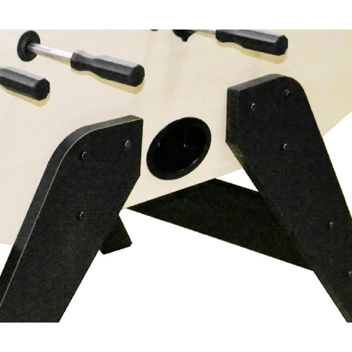 Busca el espacio adecuado para colocar este futbolín de línea moderna, fabricado con una estructura de madera contrachapada que ofrece una alta resistencia a la deformación. Disfruta de sus barras telescópicas y de la robustez de sus patas. Dimensiones del futbolín: 41 x 74 x 86 cm. Peso: 47 kg.