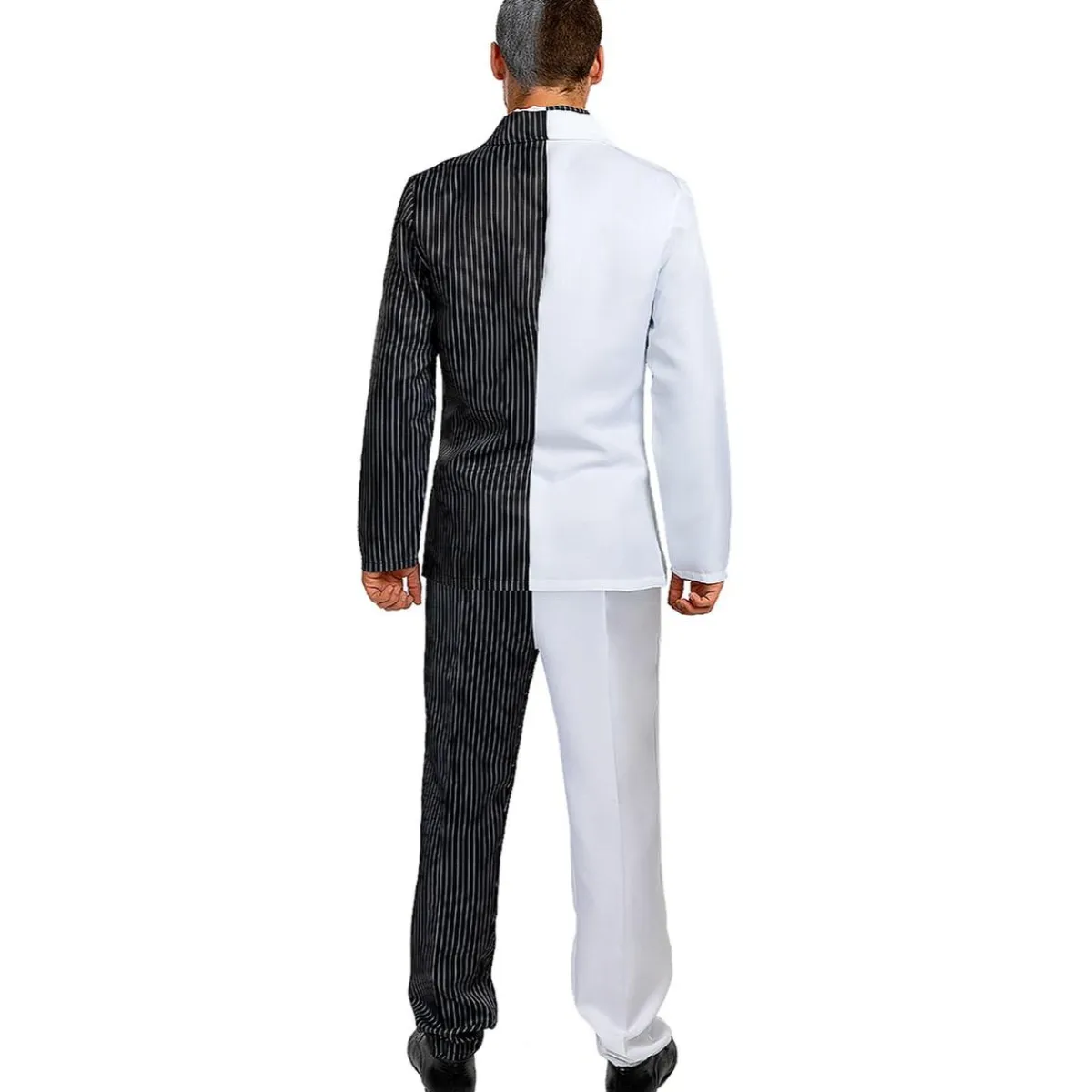 Este disfraz en talla Standard es perfecto para encarnar a Dos Caras, el villano más ambivalente de Gotham. Consta de pantalón, chaqueta, camisa y corbata con diseño asimétrico, que representan la dualidad del personaje. La máscara y la moneda completan el conjunto, logrando un look escalofriante y auténtico.