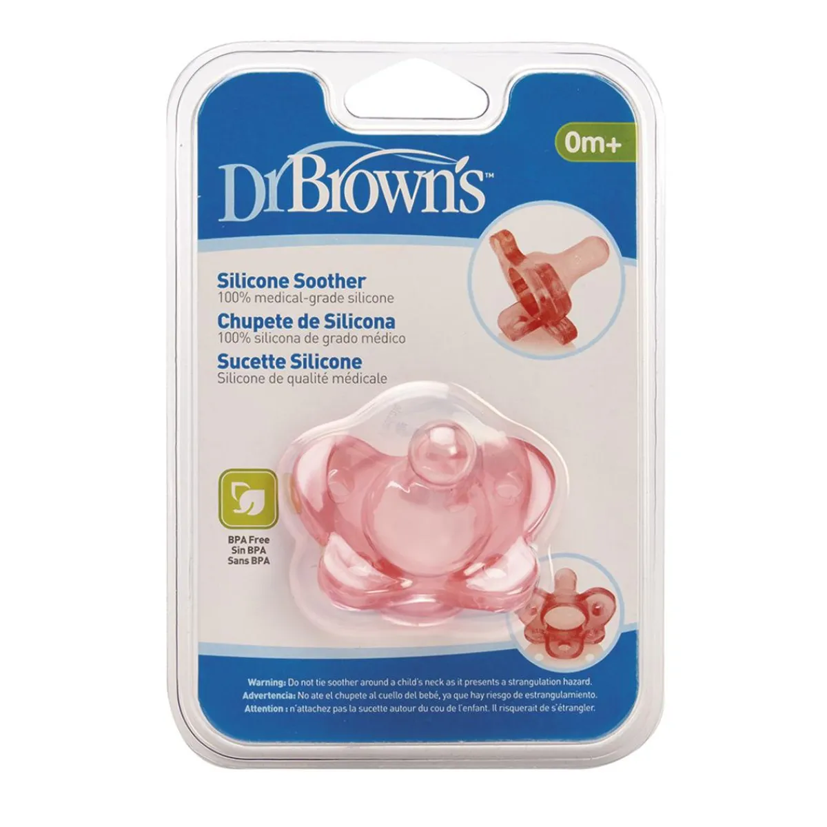 Dr Brown’s – Chupete de Silicona 1 Pieza Rosa, un chupete de color rosa de una sola pieza fabricado en silicona médica, sin BPA. Edad recomendada: +0 meses.