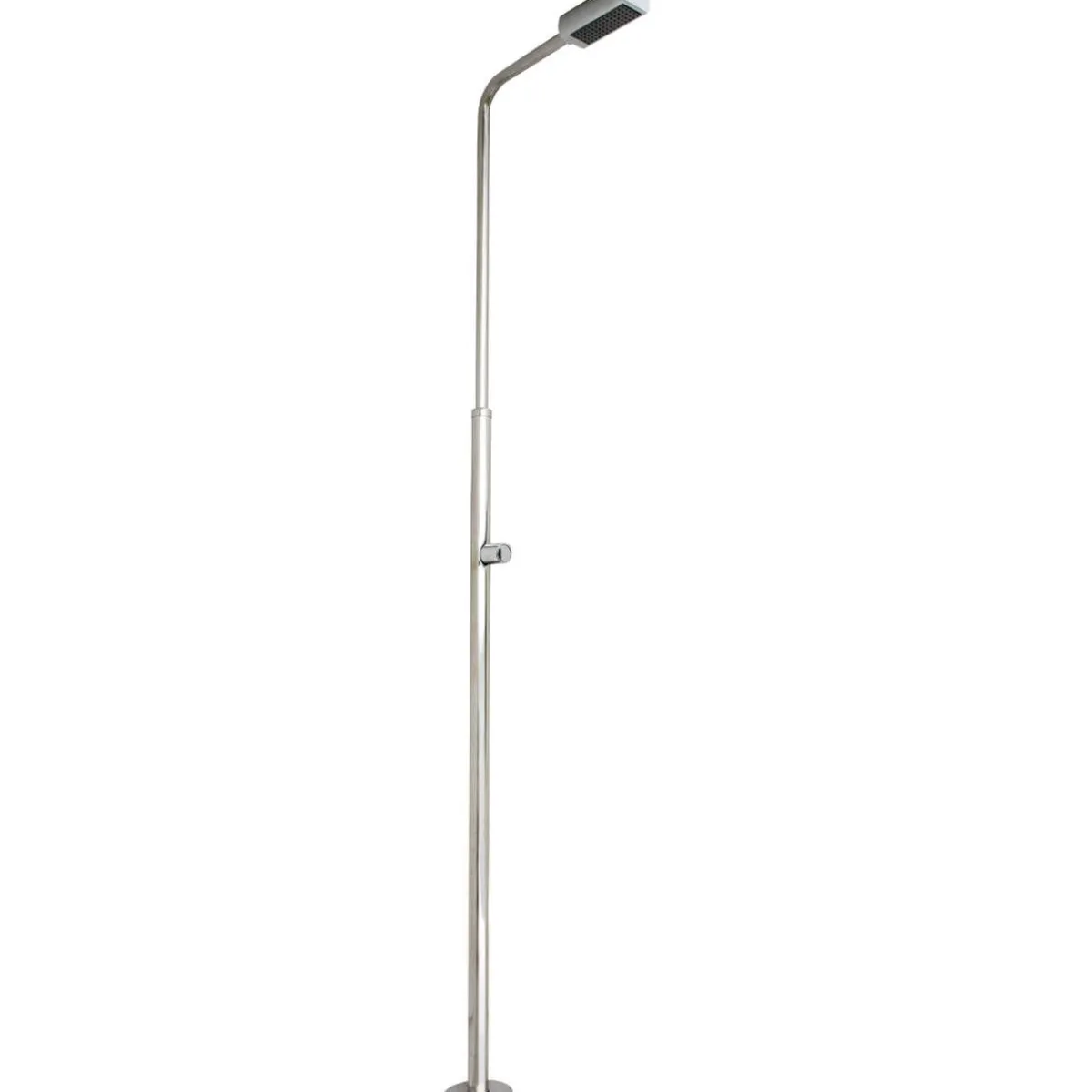 Ducha de acero inoxidable, una ducha de acero inoxidable que se integra perfectamente en el jardín.