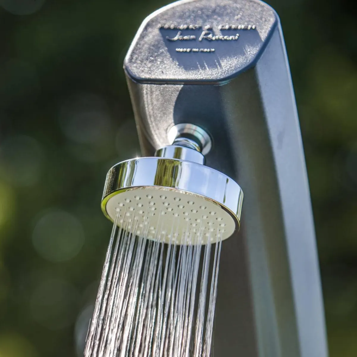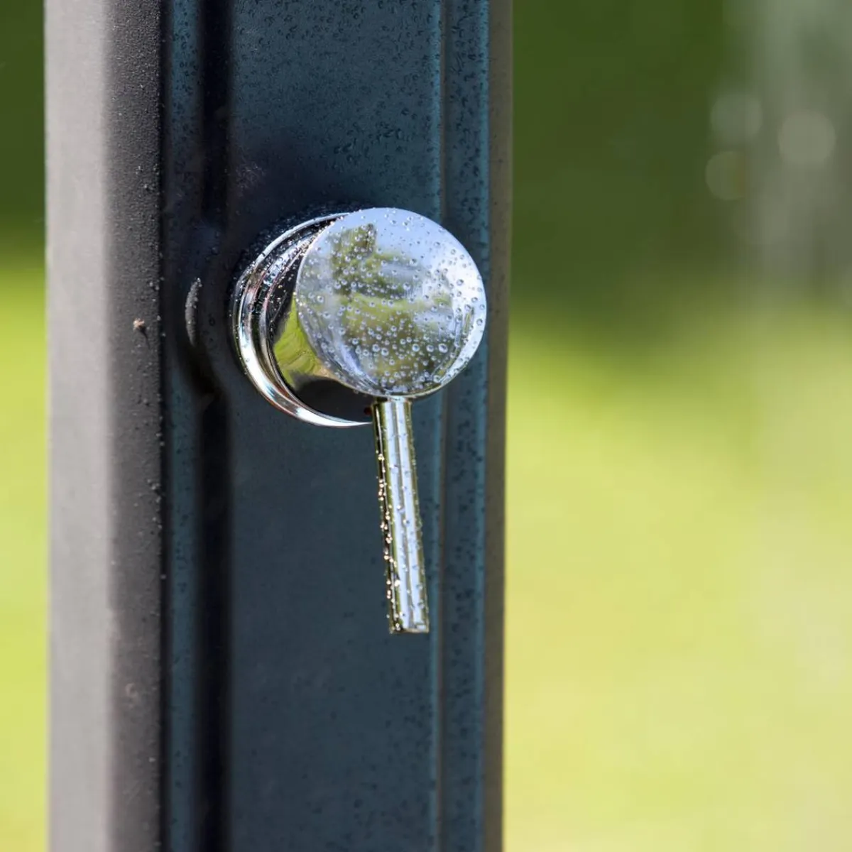 Esta ducha solar es ideal para instalar en el jardín o cerca de la piscina y disfrutar de agua caliente de forma rápida.