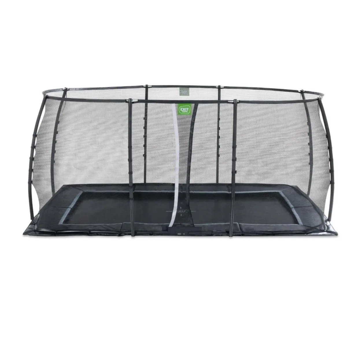 Exit – Cama elástica de suelo Dynamic 275 x 458 cm negro con red de seguridad, un trampolín rectangular a nivel del suelo de color negro mate con calidad superior.