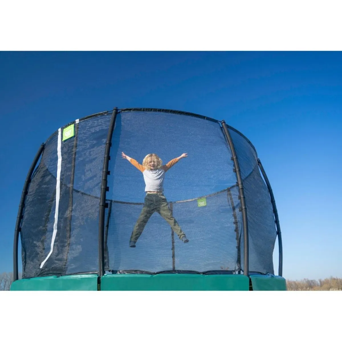El trampolín Lotus Classic viene con una red de seguridad con una solapa superpuesta. Esta entrada apta para niños se cierra automáticamente para que la red de seguridad no quede abierta de forma inadvertida.