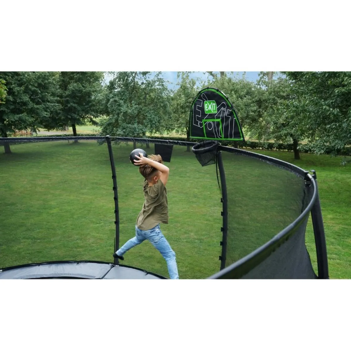 Exit – Canasta baloncesto para camas elásticas, una canasta para divertirte encestando mientras rebotas en el trampolín.