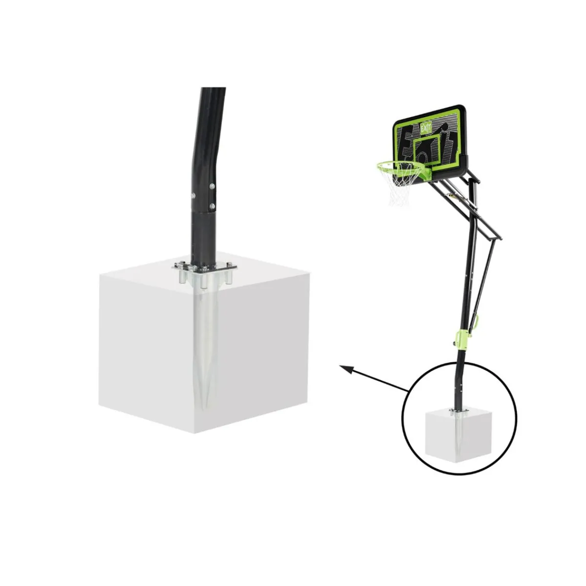Se ancla al suelo de forma fija con un bloque de cemento, por lo que no se puede mover el tablero de baloncesto después del montaje.