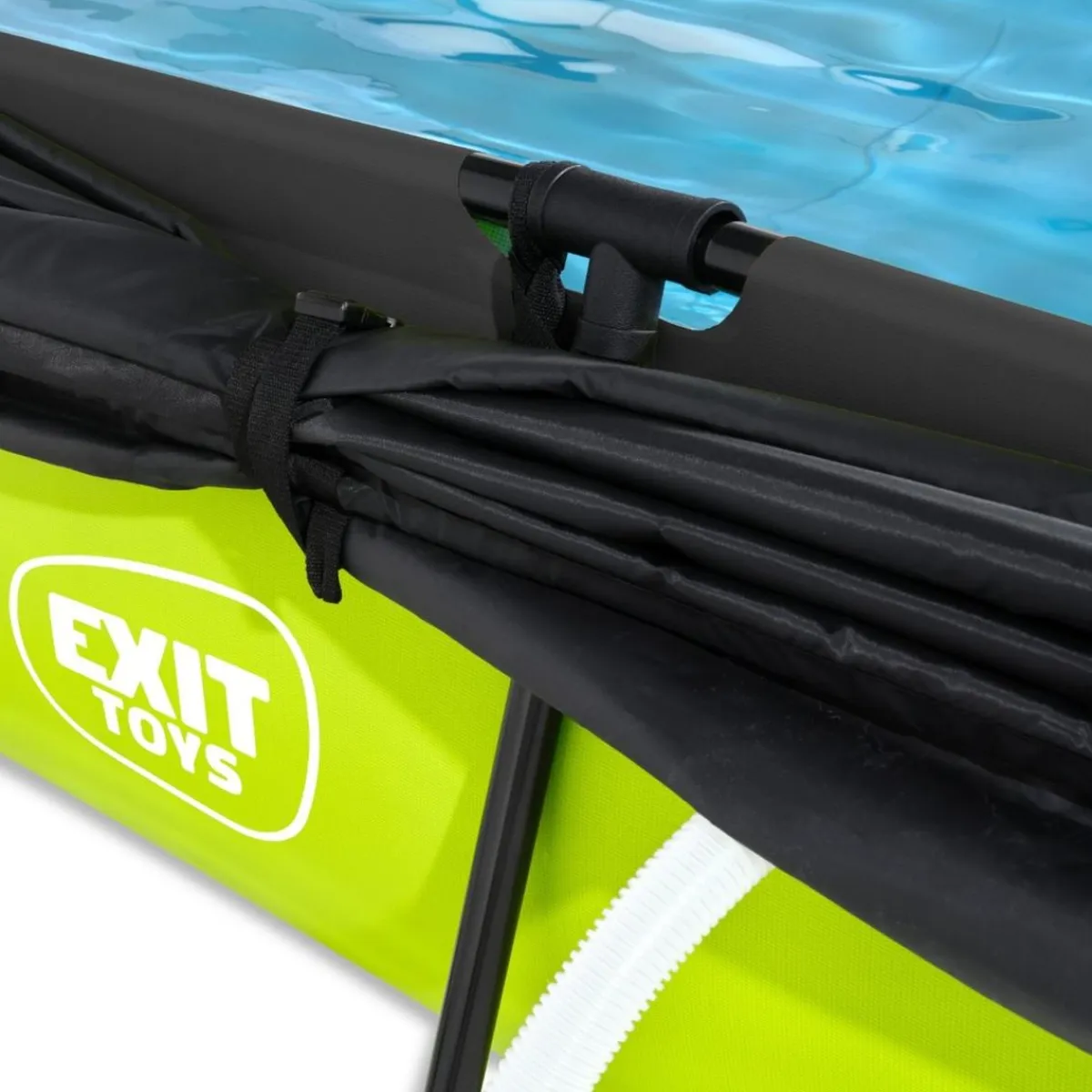 Exit – Piscina Lime verde 220 x 150 x 65 cm con filtro y toldo negro, una piscina rectangular de color verde lima que se integra perfectamente en tu jardín.