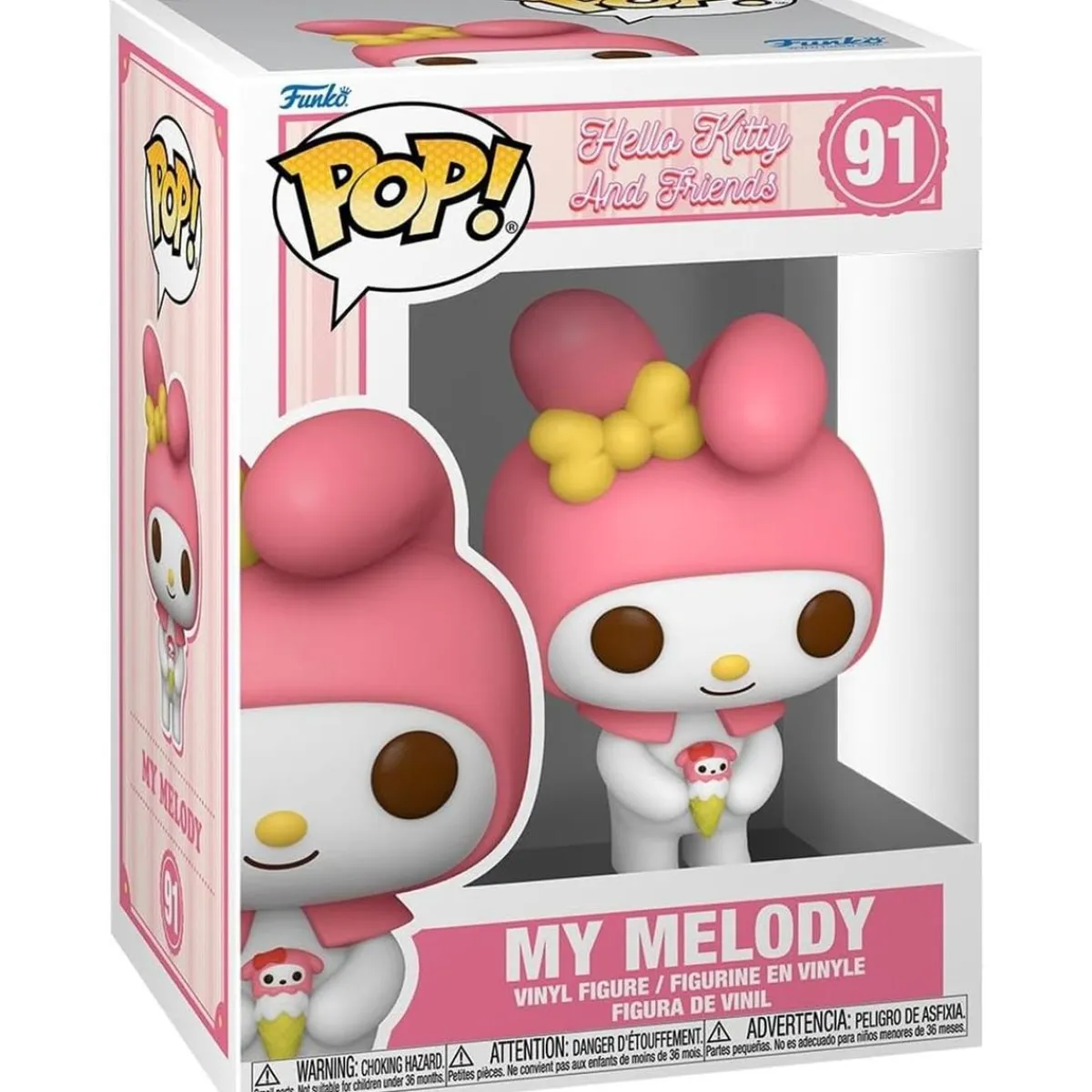 Con aproximadamente 9 cm de altura, My Melody se presenta con su característico vestido rosa y su lazo rojo, capturando todos los detalles que la hacen adorable. Esta figura no solo es un deleite para la vista, sino que también complementa cualquier colección de Funko Pop! que tengas.