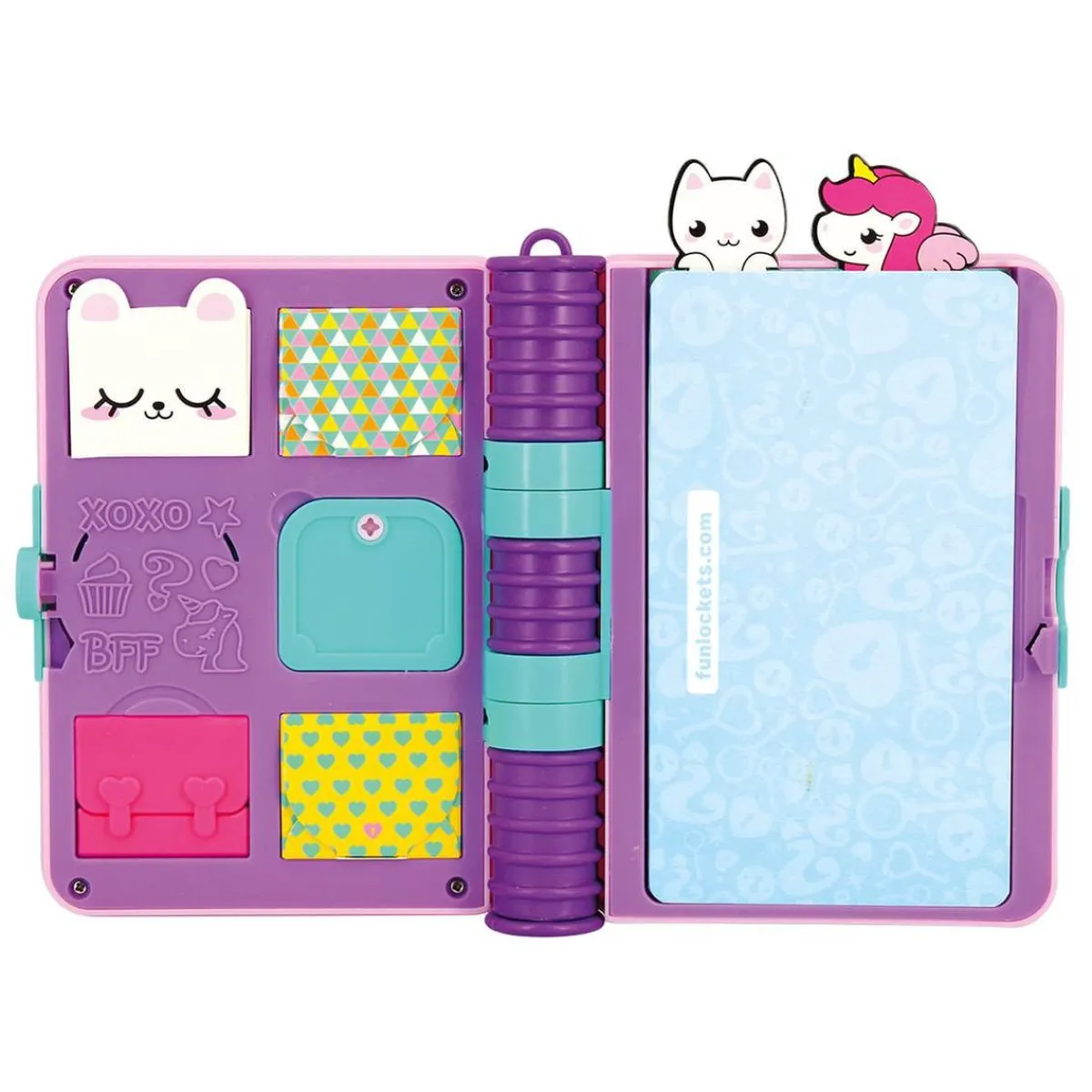 ¡Guarda tus pensamientos más divertidos, tus sueños y secretos con el Diario Secreto Funlockets! Un espacio mágico donde las niñas pueden desarrollarse, expresar su creatividad y sentirse protagonistas de su propia historia.