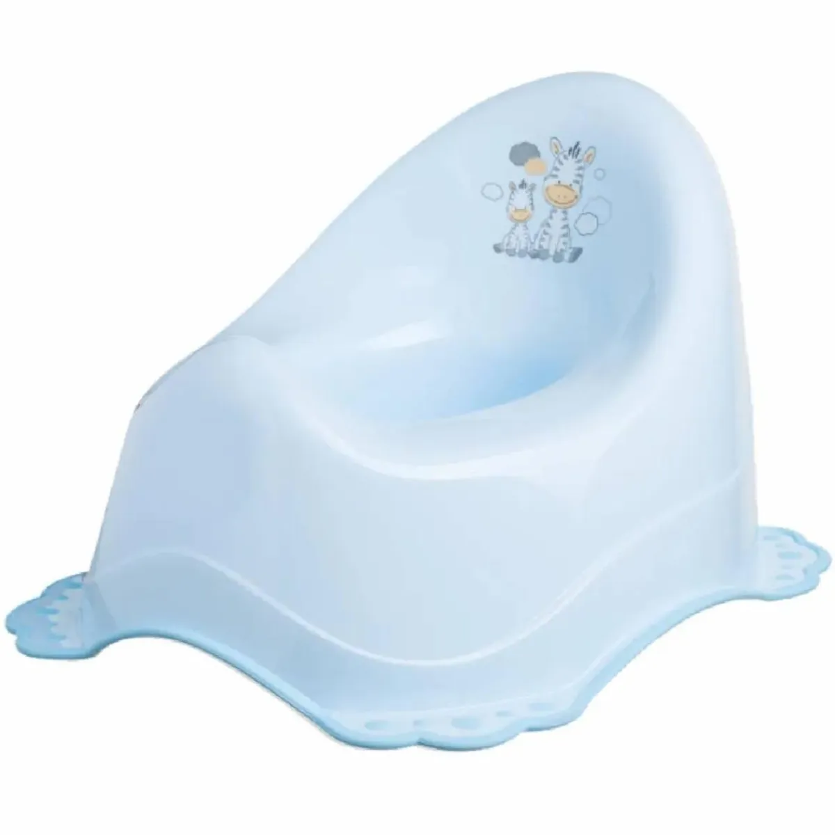 Este orinal con un simpático motivo de cebras es ideal para que el bebé aprenda a ir al baño de forma cómoda y divertida.