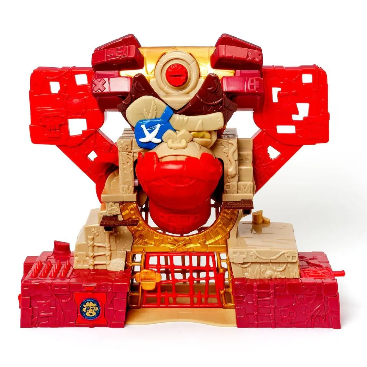 Encuentra la moneda y evita las trampas con pinchos y la catapulta. Usa la moneda para abrir la boca del gorila y descubrir si logras avanzar o si el templo te atrapa. Si caes en la prisión, ¡libera a los Piratix y sigue la aventura hasta vencer al gorila y romper el cofre del tesoro!