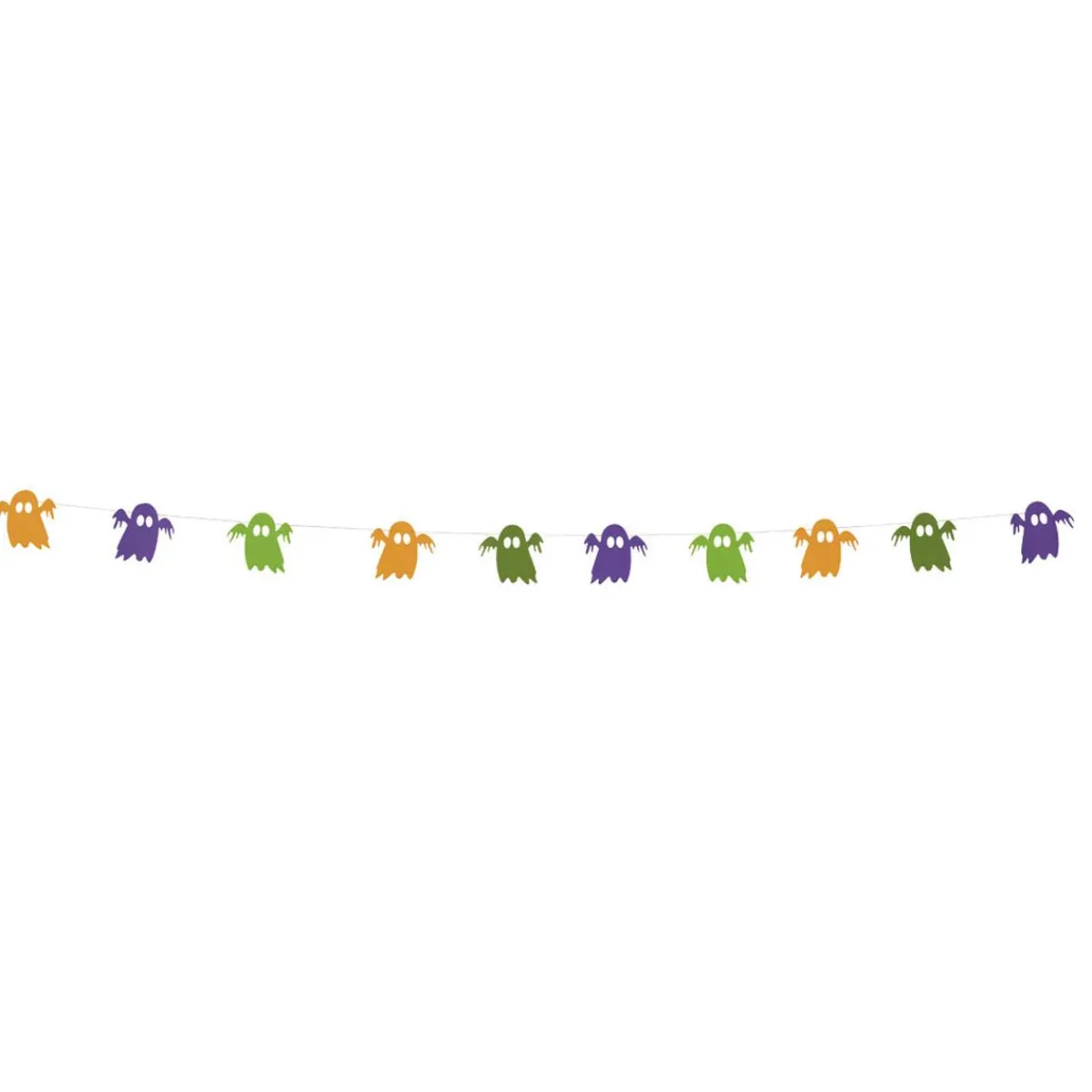 Guirnalda Fantasmas 2 metros , un accesorio de decoración de papel. Con un total de 2 metros de largo, tiene varios fantasmitas de diferentes colores. Ideal para divertidos momentos de miedo como en Halloween. Edad recomendada: +14 años.