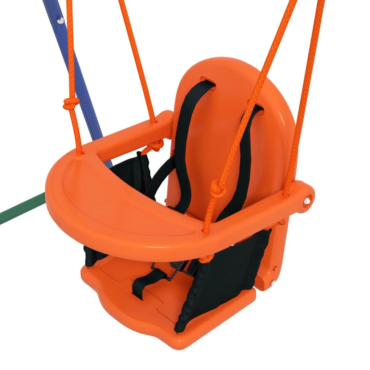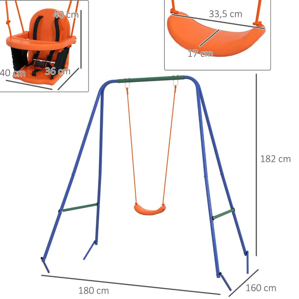 Homcom – Columpio infantil individual. Este columpio infantil ofrece una experiencia de juego única con la posibilidad de intercambiar entre un asiento de columpio para bebé y un asiento de columpio para niños, adaptándose al crecimiento de tu hijo. Su diseño metálico en forma de A proporciona estabilidad, mientras que las formas de instalación garantizan la seguridad.